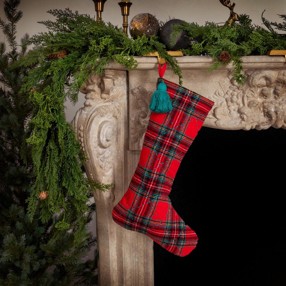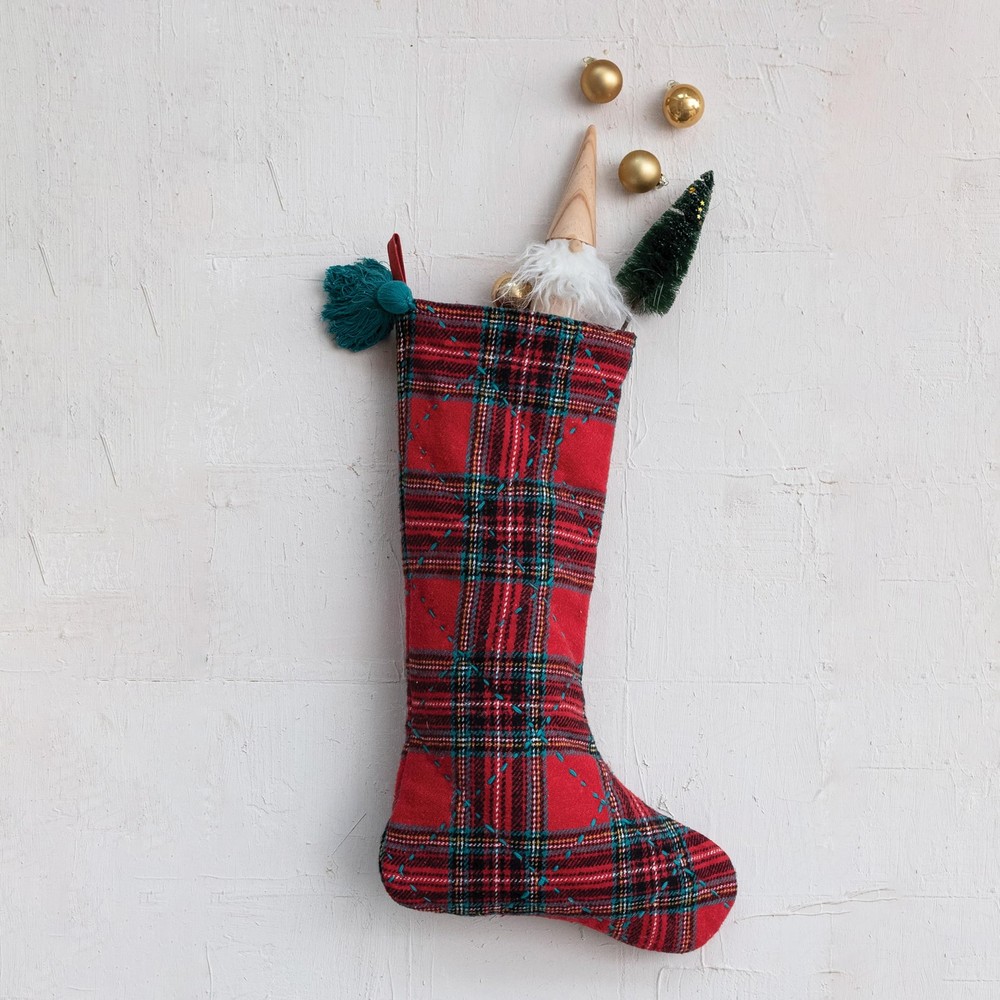 Creative Co-Op Red and Green Brushed Cotton Flannel Quilted Stocking with Tassel Add a touch of timeless warmth to every holiday celebration with our classic comfort quilted stocking for every member of the family. The stocking's soft brushed cotton flannel is quilted for extra coziness, and the red and green plaid pattern brings a classic look that never goes out of style. Finished with a playful tassel, this stocking is a nod to the comforts of Christmas past while being fully prepared to hold the joys of the present. It's the perfect piece to hang with care, inviting a sense of tradition and warmth into the home this holiday season. Enjoy the simple pleasures of a well-loved holiday classic. Features A cozy embrace of holiday tradition, this brushed cotton flannel stocking features a timeless red and green plaid pattern, accented with a charming tassel. An ideal addition to any festive setting, it brings warmth and classic style to every holiday decor This stocking, with its soft quilted texture and nostalgic plaid design, is perfect for hanging on the mantel or as a comforting holiday accent Made of plush brushed cotton flannel, it offers a soft touch and a quilted comfort that evokes holiday memories 8.0 L x 20.0 H Details Fast Free Shipping We get your order shipped out within 1-business day and delivered to your doorstep as quickly as possible with free shipping. Competitive Pricing With our dynamic pricing model, our prices are always competitive. Our prices are some of the lowest that you will find on the internet. Rest assured that you're getting a good deal when purchasing with us. 30-day Money Back Guarantee We are committed to making sure that you leave this transaction satisfied. If you're unhappy with the product for any reason, you may return it back for your money-back or a replacement within 30 days. No questions asked!