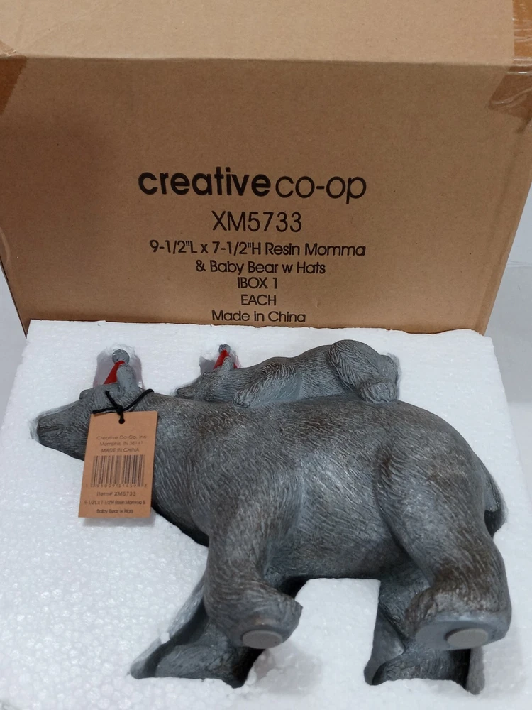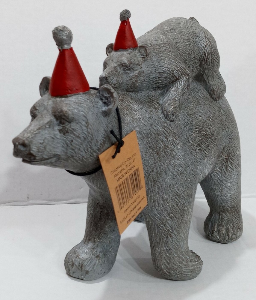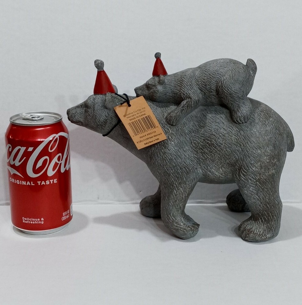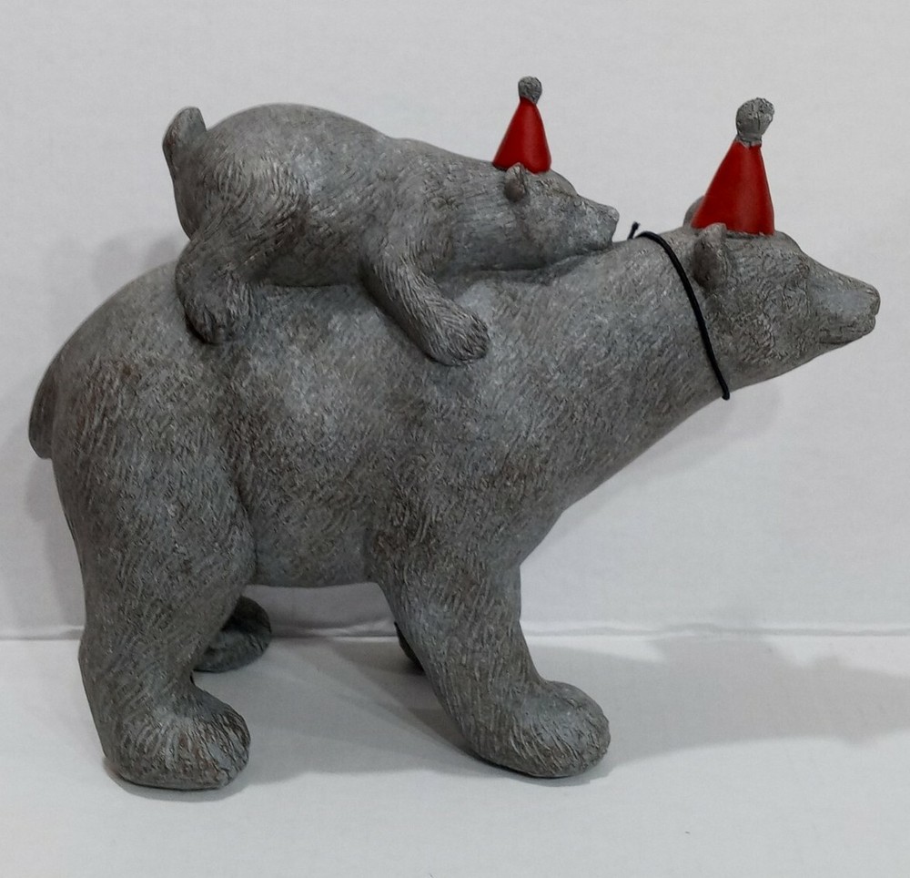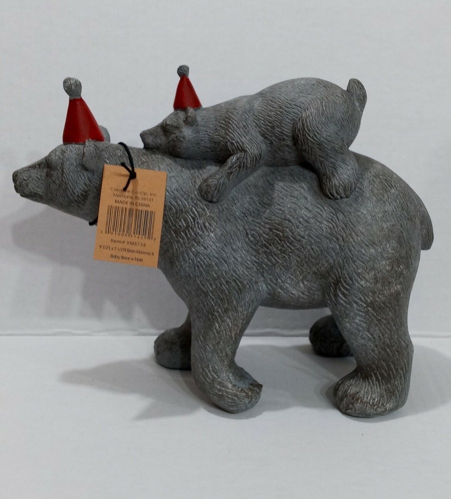 Hello! This nice statue of a mama bear and a baby bear wearing hats is brand new. Fast priority shipping!