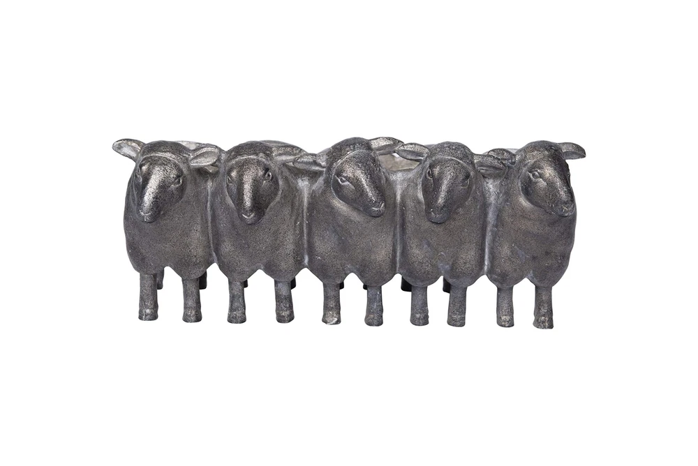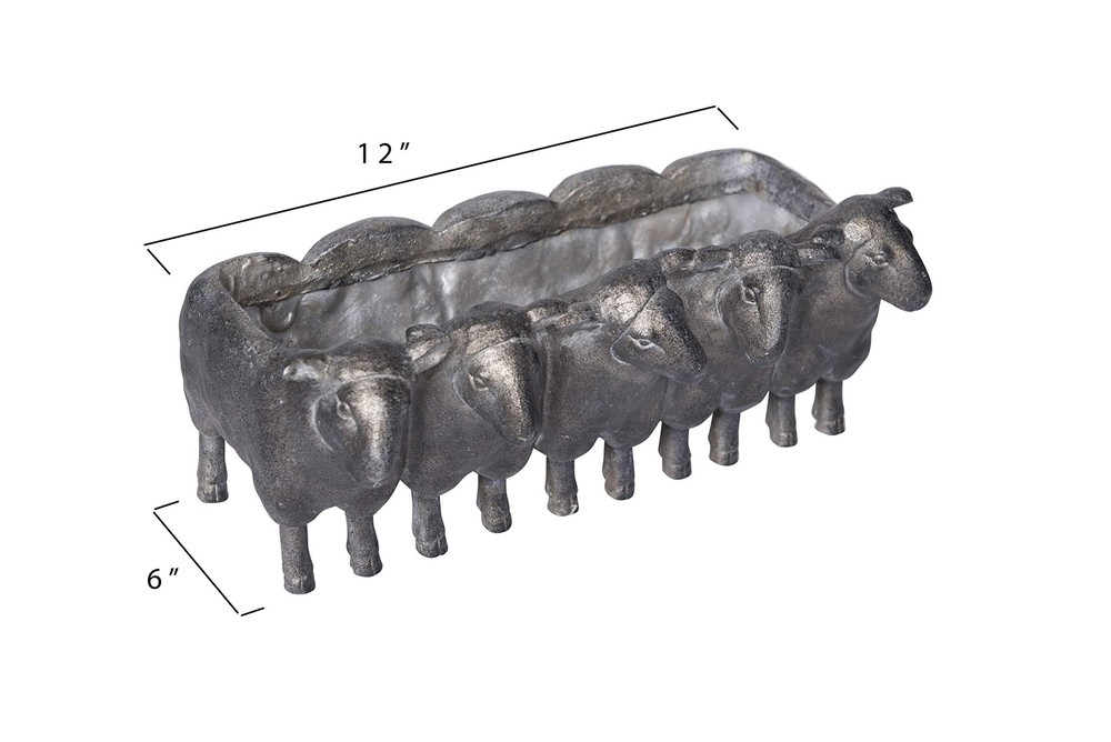 Creative Co-Op Resin Sheep Planter with Distressed Iron Finish ✓ Free 60 Day Returns ✓ Free Express Shipping Description: We combined a group of sheep to create this cute & special metallic planter. They are standing side by side & ready to hold your favorite plants or flowers. There is one Rectangle opening in the planter. Use this planter indoors or outdoors to grow your favorite mix of herbs. Features: Resin construction Distressed Finish Wipe clean with dry cloth 13"L x 7.2"W x 5.6"H Includes planter only Product Details: Material: Resin Color: Distressed Special Feature: Sheep-shaped planter, Rectangular opening for plants Style: Iron Sheep Planter Form: Box Material: Resin Color: Distressed Special Feature: Sheep-shaped planter, Rectangular opening for plants Style: Iron Sheep Planter Form: Box Shape: Sheep-shaped Indoor/Outdoor Usage: Indoor Mounting Type: Inside Mount,Outside Mount Plant or Animal Product Type: herbs Product Dimensions: 6"D x 12"W x 5.6"H Brand: Creative Co-Op Number of Pieces: 1 Pattern: Solid Included Components: Resin Sheep Planter Theme: Animals Cartoon Character: Sheep Finish Type: Distressed Finish Number of Levels: 1 Item Weight: 2 Pounds UPC: 807472999593 Global Trade Identification Number: 93 Size: Sheep Item Weight: 2 pounds Manufacturer: Creative Co-Op Country of Origin: China Item model number: DA7782 Is Discontinued By Manufacturer: No Finish types: Distressed Finish Assembly required: No Batteries required: No