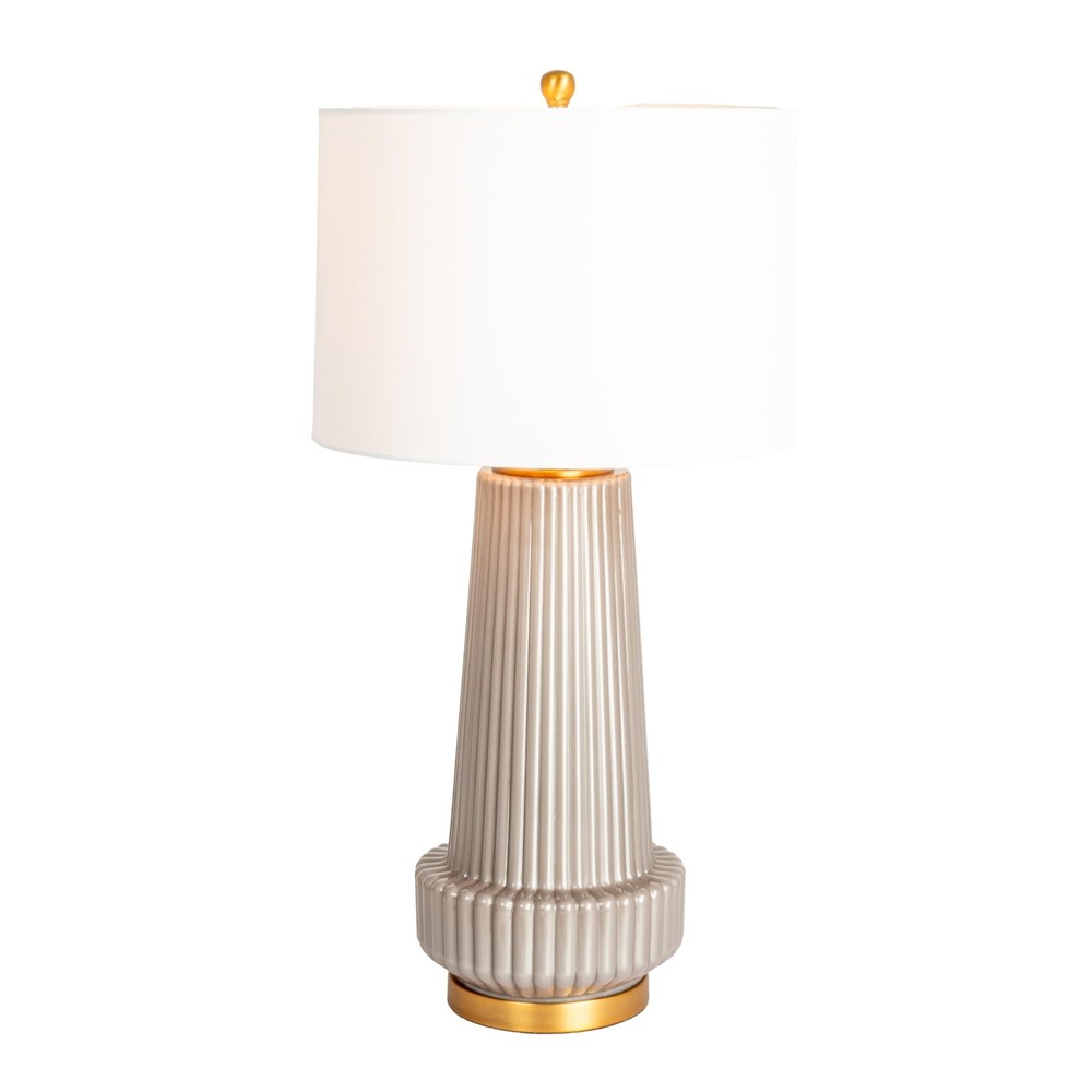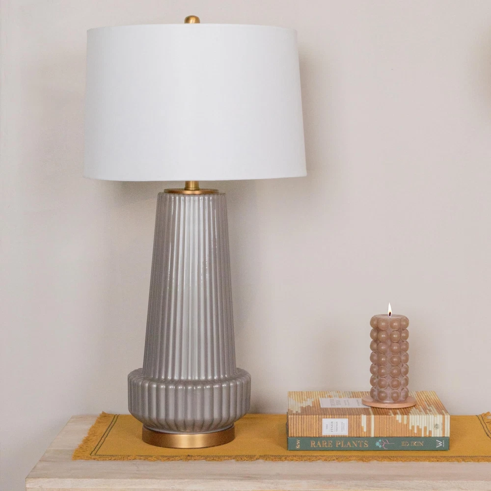 Creative Co-Op Ribbed Glass Table Lamp with Tapered Drum Shade, Gray Product Details Color: Gray Brand: Creative Co-Op MPN: EC1903 UPC: 191009761846 EAN: 0191009761846 Base Material: Glass Product Dimensions: 21"D x 21"W x 31.5"H Item Weight: 8.58 Pounds Lamp Type: Table Lamp Shade Color: Natural Base Material: Glass Product Dimensions: 21"D x 21"W x 31.5"H Item Weight: 8.58 Pounds Lamp Type: Table Lamp Shade Color: Natural Shade Material: Linen Switch Type: Socket Style: Farmhouse Brand: Creative Co-Op Color: Gray Material: Glass, Linen Room Type: Living Room, Bedroom Power Source: Corded Electric Shape: Round Included Components: Shade Mounting Type: Tabletop Wattage: 100 watts Number of Items: 1 Indoor/Outdoor Usage: Indoor Installation Type: Tabletop Voltage: 120 Volts Base Diameter: 21 Inches UPC: 191009761846 Manufacturer: Creative Co-Op Shade Height: 10.5 Inches Part Number: EC1903 Item Weight: 8.58 pounds Country of Origin: China Item model number: EC1903 Item Package Quantity: 1 Batteries Required?: No Warranty Description: No warranty. Date First Available: February 11, 2025 A stately beacon of warm light, this table lamp features a grey ribbed glass basetone glaze finish. A versatile piece, it complements a range of styles from farmhouse to contemporary, adding a touch of elegance to any room Ideal for illuminating intimate corners or as a statement piece in a grand foyer Requires one 100W max bulb (not included) 21" Diameter x 31.5" H This exquisite Ribbed Glass Table Lamp is a testament to refined taste, boasting a grey glass body with a natural linen shade. Its cream tapered drum shade diffuses light softly, making it perfect for settings that call for a gentle ambiance. Standing at a stately 31.5 inches tall, it is an ideal choice for those who appreciate the blend of traditional craftsmanship with modern design sensibilities. Whether placed in a French country maison, contemporary apartment, or mid-century space this lamp is sure to enhance the beauty of its surroundings.