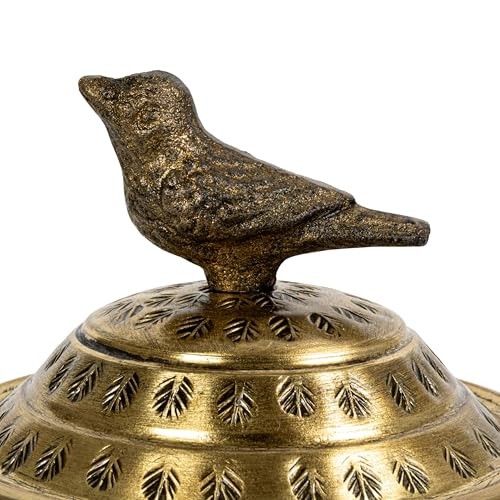 Return Policy Fast Delivery Trusted seller Creative Co-Op Round Hammered Metal Container with Bird Finial, Brass Finish Product Description A round metal container with a hammered texture, a lid, and a lovely bird finial on top Ideal for farmhouse, cottage, or whimsical style homes A charming and functional container that can be displayed on a shelf, table, or mantel Made of metal with a brass finish that gives it a warm and shiny look Measures 6 inches in diameter and 7 inches in height Shipping Returns Payment Shipping Shipping is FREE to all addresses other than APO/PO boxes in the lower 48 states. All our stock ships from US-based warehouses. Shipped via USPS or UPS (depending on location and package weight) Unless stated otherwise, all orders will ship within 24-72 hours of your payment being processed. Check our feedback to see the great reviews of FAST shipping we offer. Returns Seller does not accept returns Payment We currently accept payment via eBay managed payments only. Once payment is cleared, we will dispatch your shipment within 1-3 business days. Please refer to the "Shipping" tab for more information regarding shipping speed to your destination.