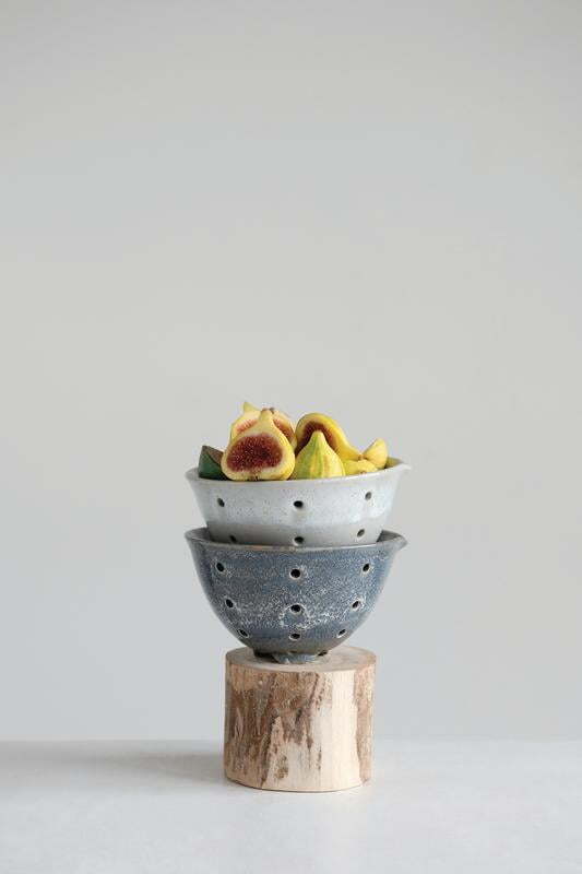 Product details Display a variety of fruits in these colorful stoneware berry baskets. Serve up strawberries, blueberries, grapes and raspberries for a healthy snack or addition to any meal. They will be a hit with family and friends alike. Fill with freshly washed fruit Openings will allow excess water and juices to drain from fruit Place on a plate or tray to catch the excess liquids