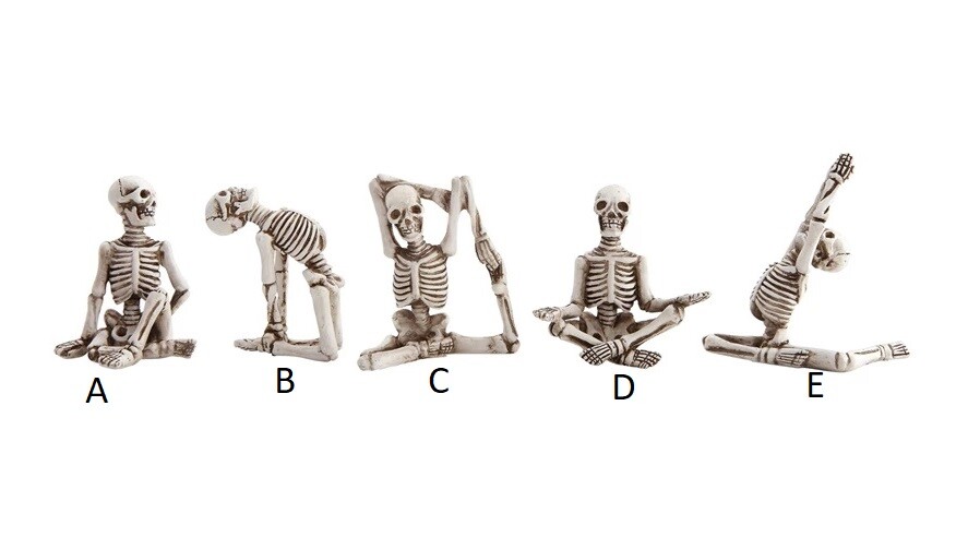 Creative Co-Op Skeleton Yoga Figurine (See end of description for shipping discount when purchasing more than 1 figurine PLEASE NOTE : Figurine B is not shown correctly in the first picture. Please look at all pictures for Figurine B as it lays on it's front side/stomach This listing is for ONE (1) Skeleton Yoga Figurine of your choice: Choose A, B, C, D or E from the drop down menu. Approximate size varies with each figurine so see pictures for correct sizing. Made of Resin and Brand Ne Please look carefully at all pictures and ask any questions before buying as there are NO RETURNS Shipping Discount : When purchasing ANY items in my store, PLEASE do the following: Put each item you want to purchase in your cart by clicking "Add to Cart". When you are finished adding all the items you wish to purchase, click on the Cart at the top of the page. Then click on "Go to Checkout" and the shipping discount will be automatically applied. You are only charged full price shipping on one item in your cart (the one with the highest shipping cost if different kinds of items are purchased) If you have any problems, please let me know. For this particular item, Shipping cost for first one is $4.65. Any additional items in this listing will have a shipping cost of $1.00 when purchased and paid for in the same order at the same time . This is automatically calculated at check out.