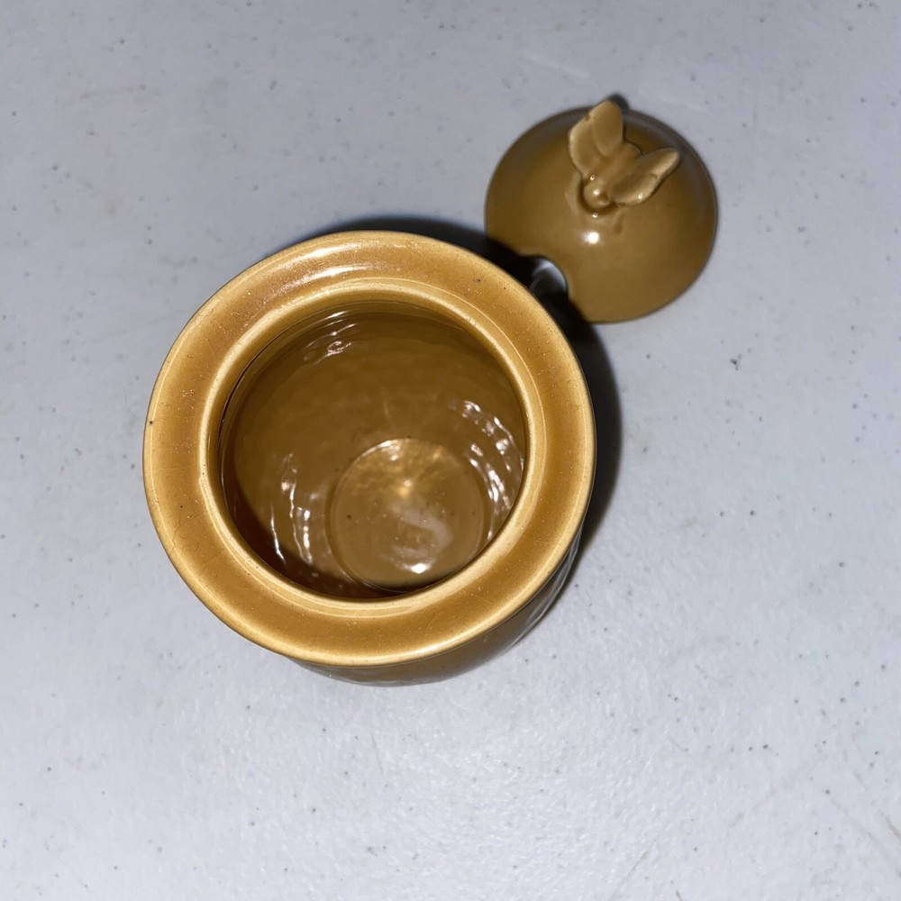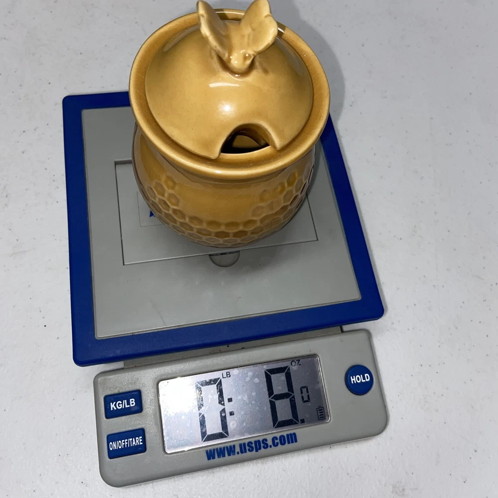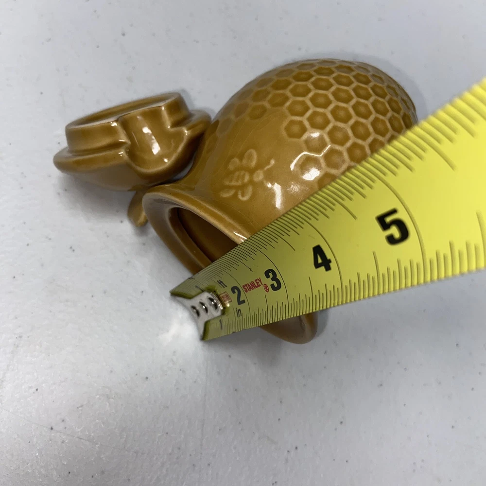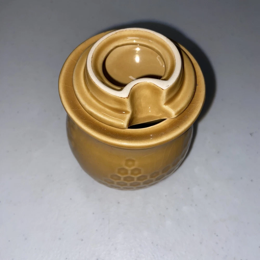 This Creative Co-Op stoneware honey jar is the perfect addition to your kitchen storage, decor & convenience. The round shape, country dark yellow color, and classic style make it a charming decorative piece as well. The jar comes with a bee handle/lid, making it easy to store and access your favorite honey. (No honey stick) Made from high-quality stoneware and ceramic materials, this honey jar is microwave safe and reusable. It measures 5 inches in height. Whether you're a fan of Creative Co-Op or just looking for a functional and stylish honey jar, this is the perfect choice. Excellent used condition no breaks or chips - Photos show all. Measurements in photos