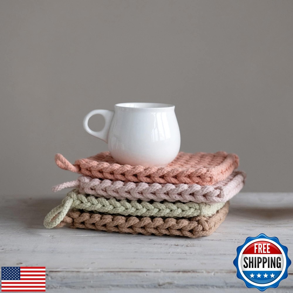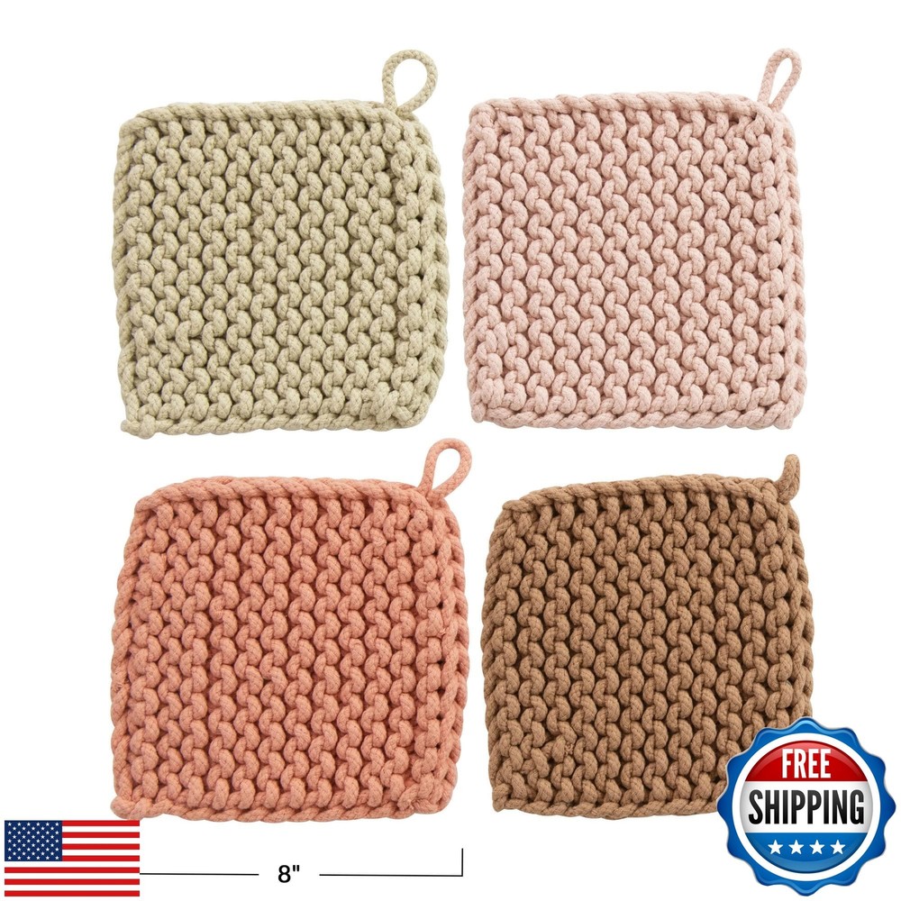 Creative Co-Op Square Cotton Crocheted Potholder, 4 Colors Features Delightful and pleasing cotton crocheted potholder will be the perfect addition to your kitchen essentials Cotton yarn comes in a muted variety of four earthy colors A charming accessory for your kitchen that will surely come in handy for all cooking and baking needs Hang as a colorful wall decor or place stacked on cookbooks for everyday use and enjoyment 8" Square Shipping Free & Fast Shipping: We offer free shipping to most of the USA with a normal delivery time of 3-7 days. However, due to the current situation, additional delivery time (up to 3 weeks) may be required for some items. Alternative Carriers: We may use alternative carriers (e.g., USPS, FedEx, UPS) to ensure your package arrives safely and on time. Due to the use of multiple carriers, we are unable to provide a tracking number automatically. Handling Time: Orders are processed and shipped within 1-2 business days of receiving cleared payment. Shipping Restrictions: Shipping to Alaska, Hawaii, Puerto Rico, Guam, and other US territories may incur shipping charges or delivery restrictions. Please contact us before ordering, or your order can be refunded/cancelled. State Restrictions: Certain items may not be shipped to California due to state regulations. Contact for Tracking Updates: If you require tracking updates or have any concerns about the delivery of your order, please feel free to contact us, and we will be happy to assist you. Return Policy 30-Day Hassle-Free Returns: If you are not completely satisfied with your purchase, you can return the item for free within 30 days of receiving it for a full refund or exchange. Easy Return Process: Contact us, and we will provide you with a prepaid return shipping label and detailed instructions. No Restocking Fee: There are no restocking fees for returns. However, the buyer is responsible for return shipping costs if the return is not due to a seller's error. Refund Processing: Refunds will be processed within 1 business day of receiving the returned item in its original condition. Payment We accept all major credit cards, PayPal, and Apple Pay for your convenience. Your payment information is secure and encrypted to ensure a safe and seamless transaction. Please complete your payment within 3 days of purchase to avoid any delays in shipping. Feedback Your feedback is extremely important to us. We strive to provide the best products and customer service possible. If you are satisfied with your purchase, please take a moment to leave us a positive review. If you have any concerns or issues with your order, please contact us before leaving negative feedback. We are committed to resolving any problems and ensuring your satisfaction. Contact Us If you have any questions or concerns, please feel free to reach out to our customer support team. You can contact us through the eBay messaging system. We are available Monday to Friday, 9:00 am to 5:00 pm EST, and we will do our best to respond to your inquiry within 24 hours. Thank you for supporting our small family business!