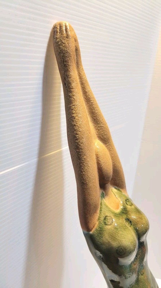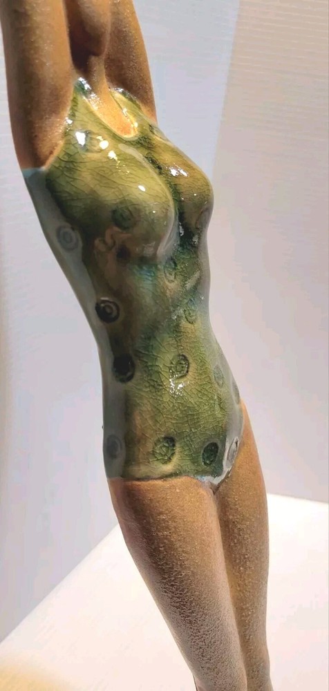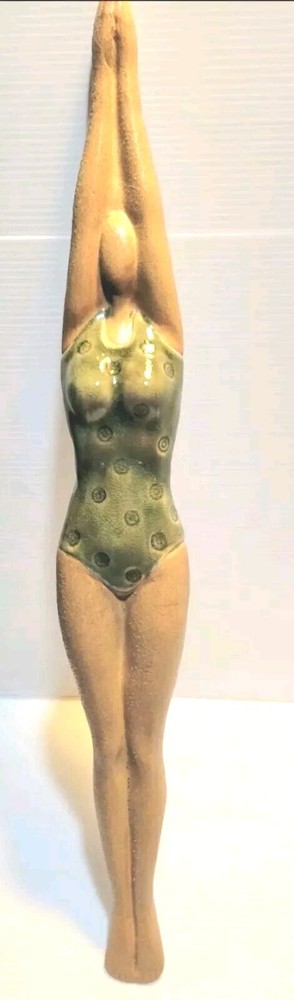 Creative Co-Op Stoneware Diver 20.5" Bathing Suit Green Woman Beach Swimming. Female diver with green one piece suit. Matte finish. A great addition to your poolside or wherever there is water decor. Wear is consistent with age and use. Please review the photos for condition and size. Shipped with the utmost care.