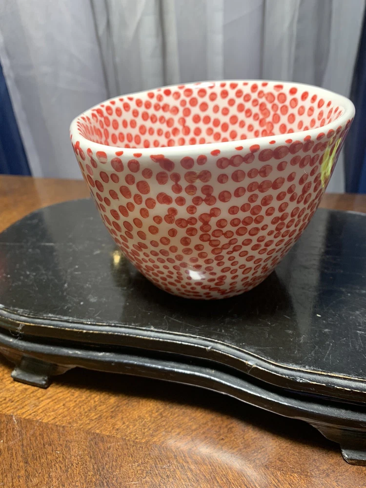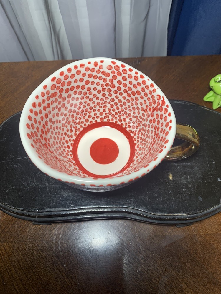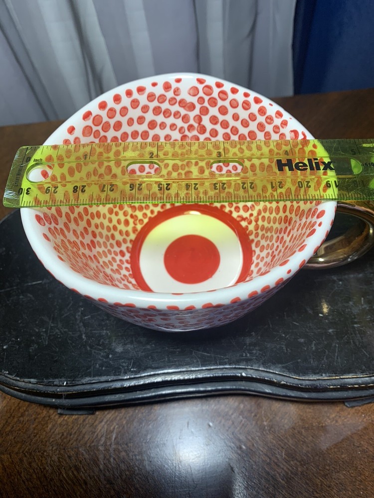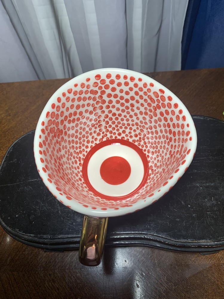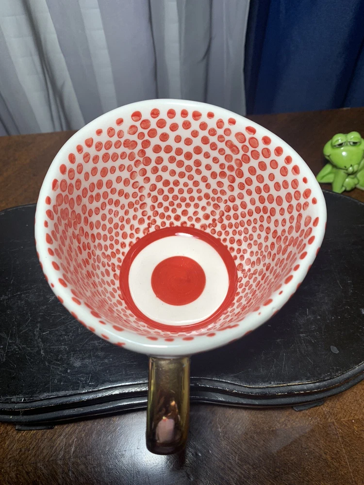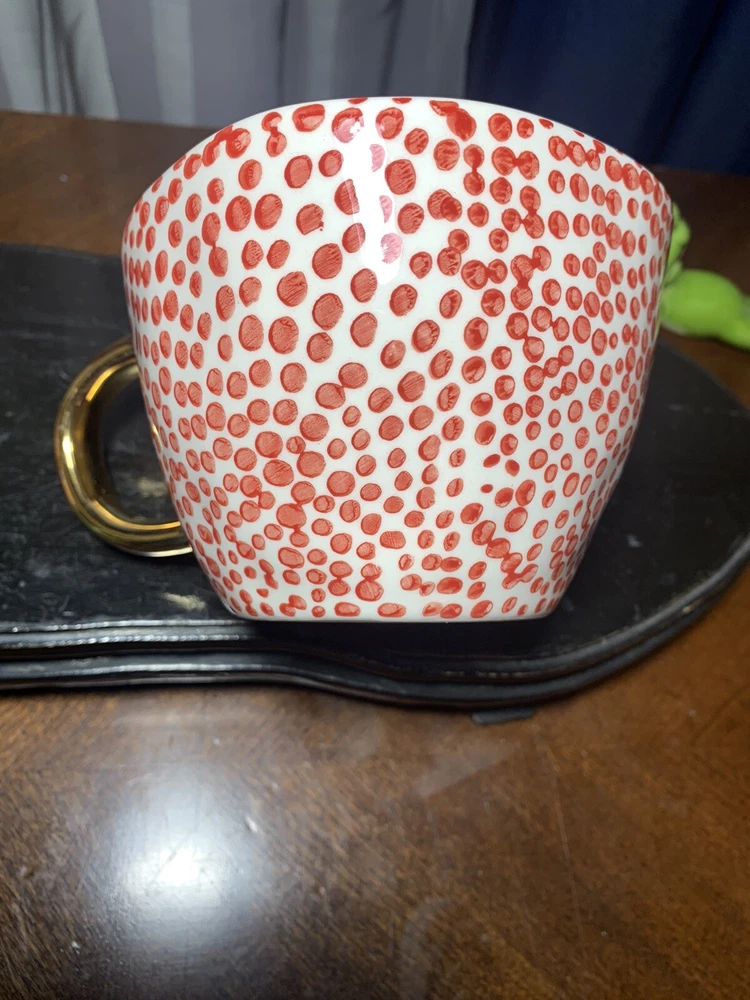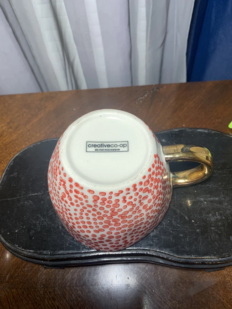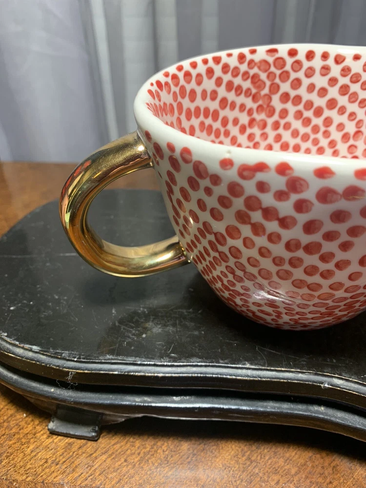 Creative Co-Op Stoneware Mug w/ Red Dots Design & Gold Handle. Approx 12 Oz....