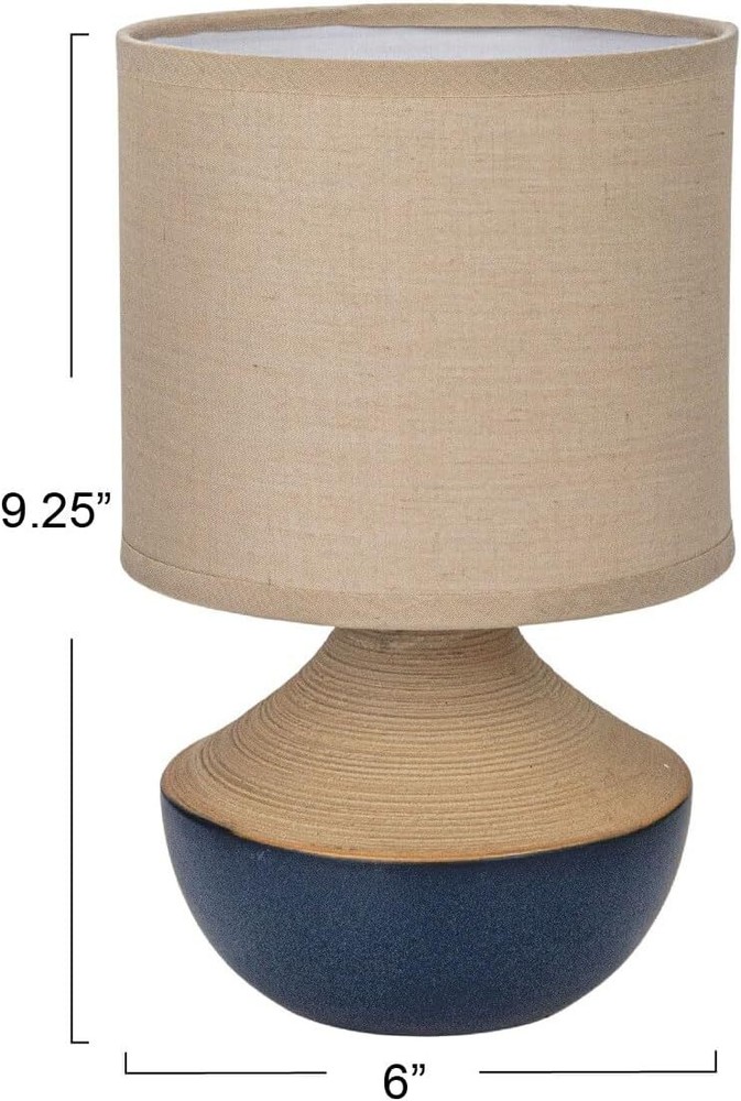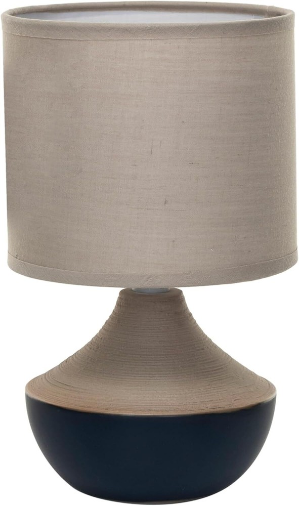 Creative Co-Op Stoneware Portable Table Lamp with Linen Shade, Black Product Details Style: Farmhouse Brand: Creative Co-Op Color: Black Product Dimensions: 5.88"D x 5.88"W x 9.25"H Special Feature: Portable Light Source Type: LED Finish Type: Glossy Material: Stoneware, Linen Lamp Type: Table Lamp Room Type: Office, Living Room, Bedroom Shade Color: Natural Shade Material: Linen Base Material: Stoneware Recommended Uses For Product: Decoration Power Source: Corded Electric Shape: Round Switch Type: In Line Number of Light Sources: 1 Connectivity Technology: USB Included Components: Shade Is Waterproof: False Bulb Shape Size: S8 Mounting Type: Tabletop Wattage: 25 watts Number of Items: 1 Lighting Method: LED Control Method: Touch Item Weight: 0.99 Pounds Indoor/Outdoor Usage: Indoor Specific Uses For Product: Decoration Bulb Base: E14 Installation Type: Tabletop Number of Pieces: 1 Is Cordless?: No Item Weight: 15.8 ounces Manufacturer: Creative Co-Op Country of Origin: China Item model number: DF8763 Finish types: Glossy Batteries required: No A chic and cozy table lamp that features a black stoneware base and a natural linen shade A versatile addition to any style, from farmhouse to French country to boho to modern to lodge Requires 1 25-watt bulb (not included) and has a switch for easy operation Made of stoneware and linen, durable and natural materials that create a warm and inviting ambiance Measures 5.75 inches in diameter and 9.25 inches in height This stoneware table lamp with linen shade, black and natural is a beautiful piece for any room. It brings a touch of elegance and comfort to any space with its black stoneware base that has a smooth and glossy surface and its natural linen shade that has a soft and textured feel. The stoneware and linen materials are durable and natural, and they create a warm and inviting ambiance when lit. The lamp is versatile and can fit any style, from farmhouse to French country to boho to modern to lodge. It can also be used in any room, such as the living room, bedroom, office, or study. The lamp requires one 25-watt bulb (not included) and has an inline switch for easy operation. It is easy to keep clean and tidy, and it will make any space more stylish and cozy. The lamp measures 5.75 inches in diameter and 9.25 inches in height, making it suitable for any table or desk.