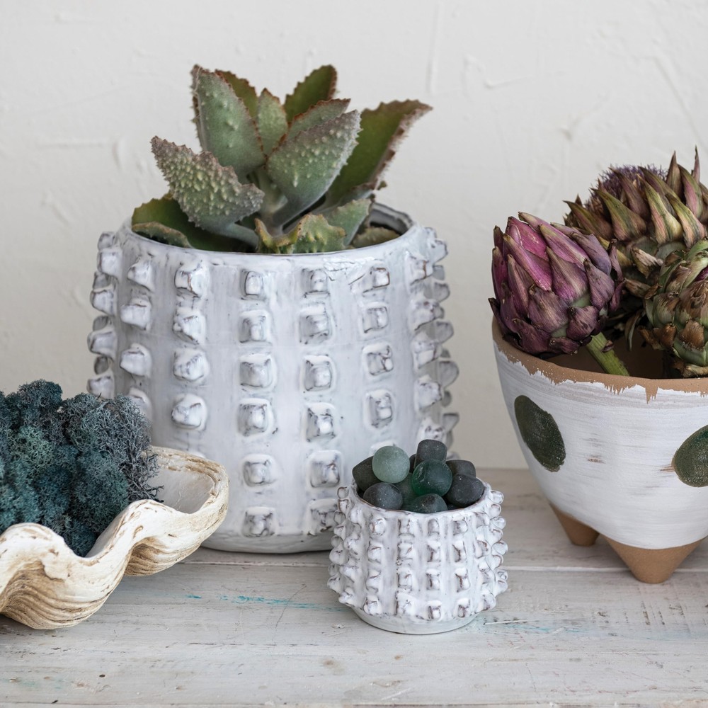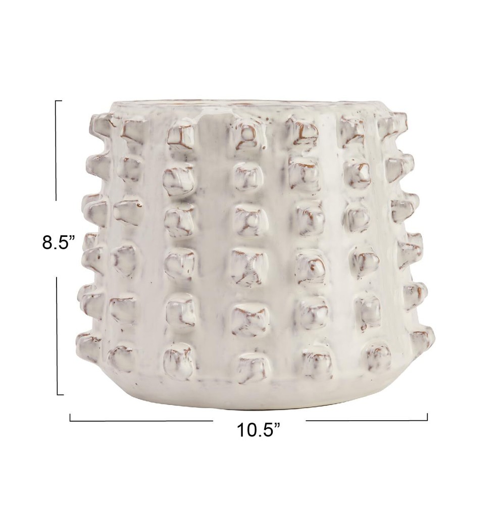 Creative Co-Op Stoneware Sculptural Raised Dots, Ivory Planter This eclectic stoneware vase features a sculptural silhouette with raised dot detail and a naturally variating reactive glaze Display in a living space of any style from modern to boho Showcase seasonal flora or as a statement-making standalone accent Made from stoneware 10.75 inches L x 10.5 inches W x 8.5 inches H Mix and match our carefully curated collection of standing, wall mount, and decorative pots and planters. Explore a vast array of textures, hues, and silhouettes to create a personalized indoor jungle, including planters on stands, wall buckets, oversized pots, hanging planters, figurine planters, window boxes, footed pots, and so much more. Choose from a wide array of materials from stoneware and ceramic to metal and glass, and styles from contemporary boho and classic farmhouse to mid-century modern and vintage glam. Showcase lovingly grown herbs and greenery inside pieces from this artfully crafted collection, or simply use as a stylish cover for low-maintenance faux flora. Shipping We offer FREE shipping on specialized orders! We ship within Three business days of payment, usually sooner. We use a selection of shipping services such as UPS, FedEx, USPS etc. We only ship to the lower 48 states, no APO/FPO addresses or PO Boxes allowed. Local pickups and combined shipping options are not provided at this time. Return You can return a product for up to 30 days from the date you purchased it. Any product you return must be in the same condition you received it and in the original packaging. Please keep the receipt. Payment We accept payment by any of the following methods: PayPal Please pay as soon as possible after winning an auction, as that will allow us to post your item to you sooner! Credit/Debit Card Please pay within 2 days of buying now, as it makes it easier to ship as fast as possible to you! Feedback Customer satisfaction is very important to us. If you have any problem with your order, please contact us and we will do our best to make you satisfied. Contact Us If you have any queries, please contact us via ebay. We usually respond within 24 hours on weekdays. Please visit our eBay store to check out other items for sale! Thank you for shopping at our store.