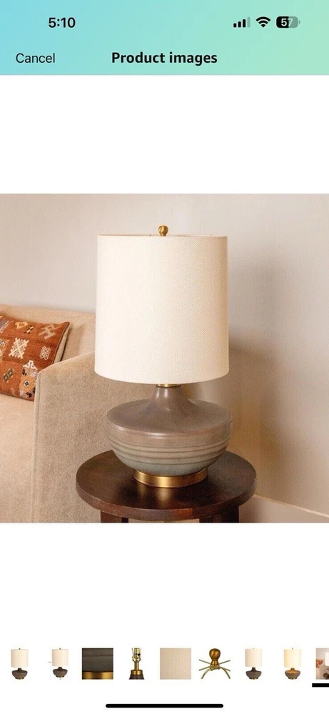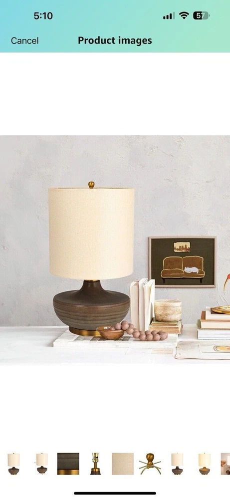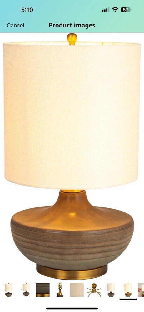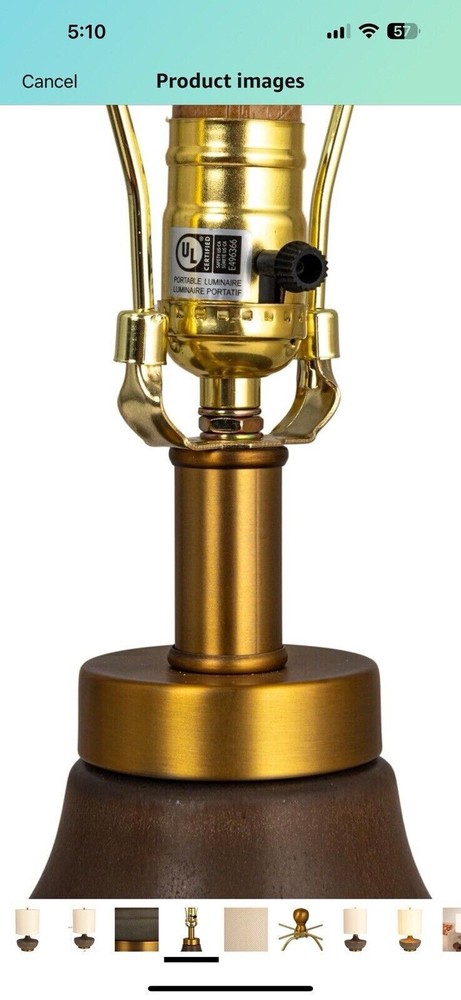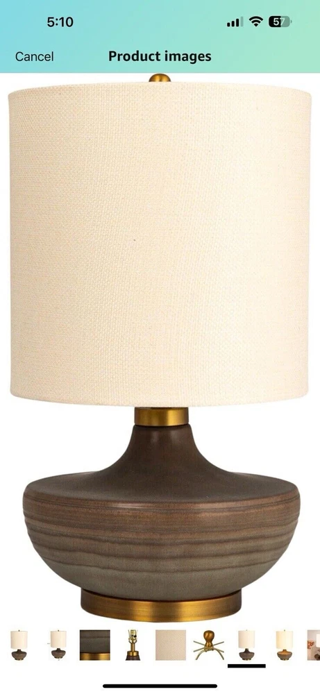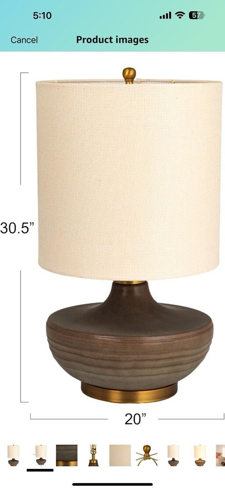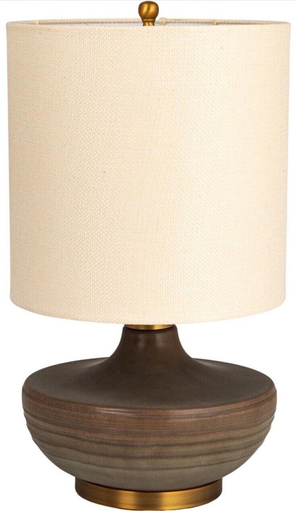 Creative Co-Op Stoneware Table Lamp with Elongated Drum Shade, Brown Base Material Stoneware Bulb Base E26 Product Dimensions 20"D x 20"W x 30.5"H Item Weight 9.88 Pounds Lamp Type Table Lamp Shade Color Natural A beacon of warmth, this earthy-brown stoneware table lamp casts a serene glow through the natural linen shade A perfect fusion of Farmhouse coziness and French Country elegance, it also complements Contemporary, Lodge, and Transitional interiors Ideal for illuminating intimate corners or as a statement piece in a grand foyer Requires one 100W max bulb (not included) 20" Diameter x 30.5" H See less Product specifications Measurements Item Weight 9.88 Pounds Item Dimensions D x W x H 20"D x 20"W x 30.5"H User guide Installation Method Tabletop Style Color Brown Item Shape Round Shade Color Natural Materials & Care Shade Material Linen Material Type Stoneware, Iron, Linen Base Material Stoneware