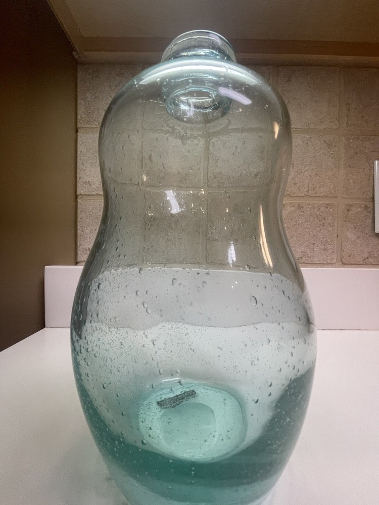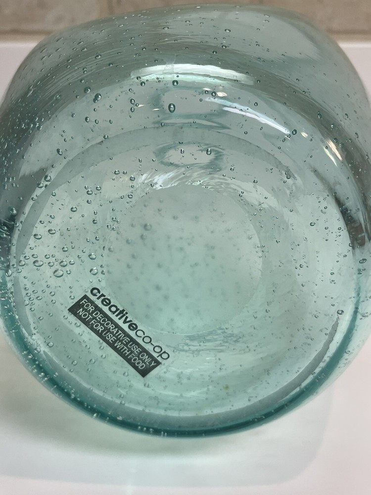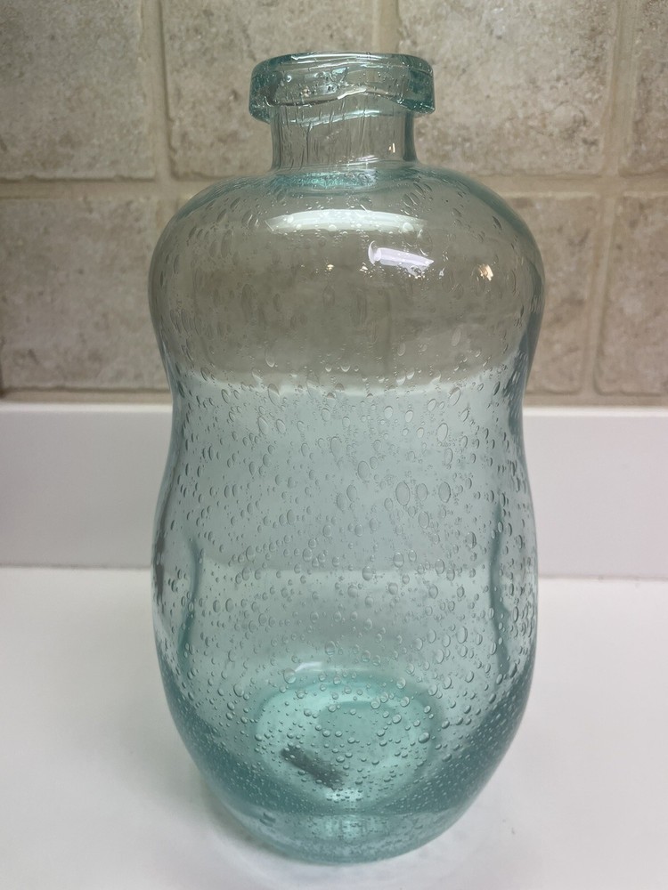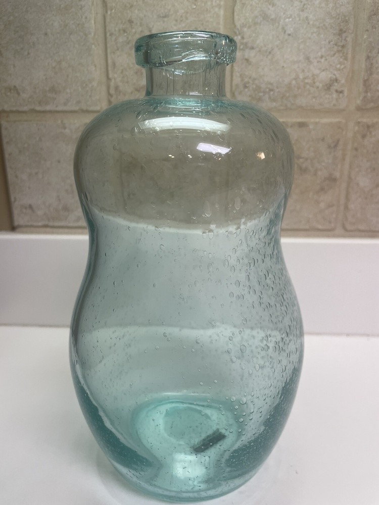 This sale is for one (1) Creative Co-Op bubble glass bottle/jar/vase. The teal blue-green bottle/jar/vase has hour glass shape with two dimples near the bottle of the bowl. The bottle/jar/vase is about 10" tall, 3 1/2" at base and 2" at top. The bottle/jar/vase is in excellent condition with no chips, cracks, or scratches. ............................................................................................................................................ SHIPPING & RATES Shipping charges are the responsibility of the buyer and are non-refundable. Rates include insurance. Shipping rates are provided by the eBay calculator based on the package weight and dimensions as well as your location (zip code). I have no control over these rates. In some cases, I am able to ship for less than anticipated. In such cases, I will issue you a refund of the difference if it is greater than $5.00. OTHER IMPORTANT INFORMATION Damaged Product: If you receive an item that was damaged in transit, please retain the item as well as all packaging and notify me ASAP. The item is insured. Please e-mail photographs that show the damage to both the item and packing materials. You will also need to retain the item and packing materials until notified by me that a claim has been filed and paid. Sometimes, pictures are not enough for a claim, and the USPS will require the buyer to bring the item to the post office to verify damage. So, please keep everything until notified. Do not return damaged items to me. Returns : I do not accept returns. If you change your mind about an item after receiving it, I am sorry. Descriptions: Make sure to read the descriptions and review the pictures carefully. I do my best to provide the most details possible including measurements, colors, and any defects the item might have. Opinions about details or defects can be subjective. So, if you have any concerns/questions about the item you are looking at, please contact me by email prior to purchase. After purchase, if you think there is a discrepancy in what you received and the description provided, please contact me by email. Please do not open a return request. We can usually resolve a concern. Photographs: Photos are of the actual item, except in the case of a multiple item listing where all items are the same. The only exception to this would be where an item is new in package and, to avoid damaging the packaging, I use a manufacturer's picture. Photos are considered part of the description. I appreciate the opportunity to work with you to solve any problem that may arise, so please contact me if you have a concern about your purchase.