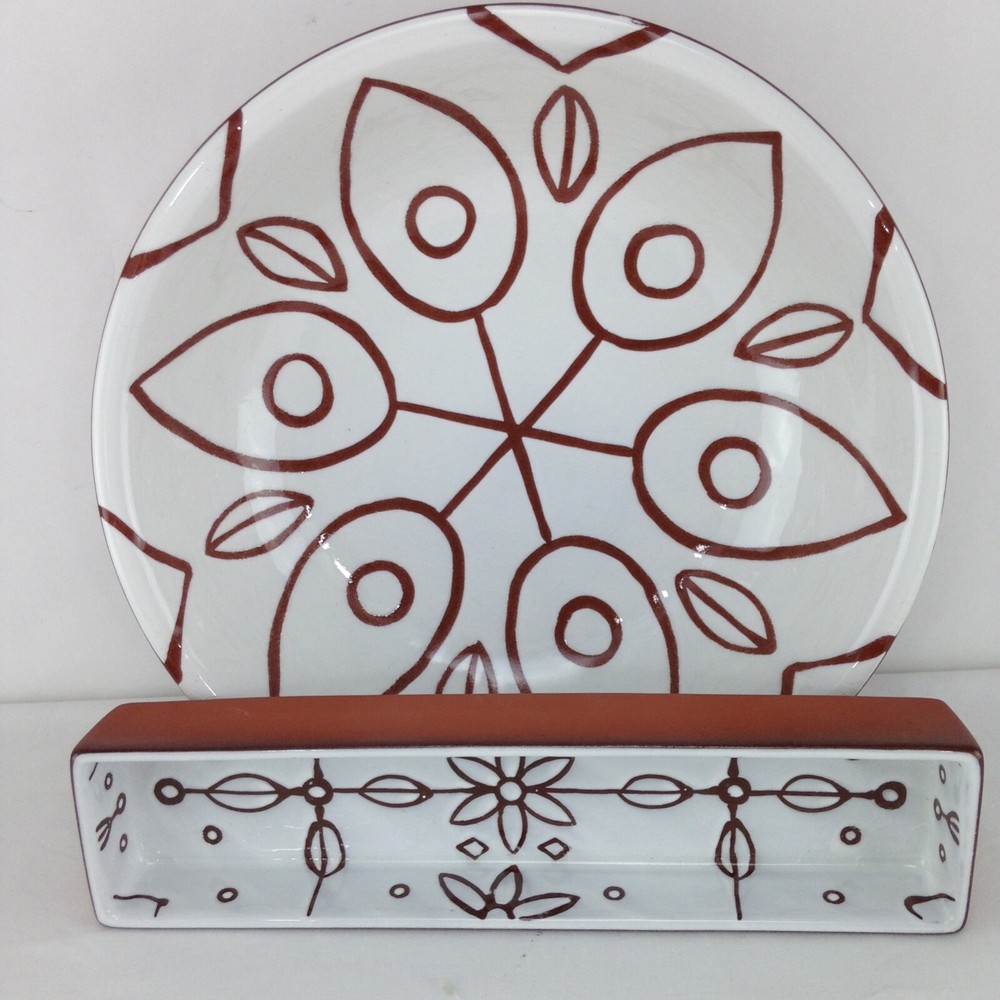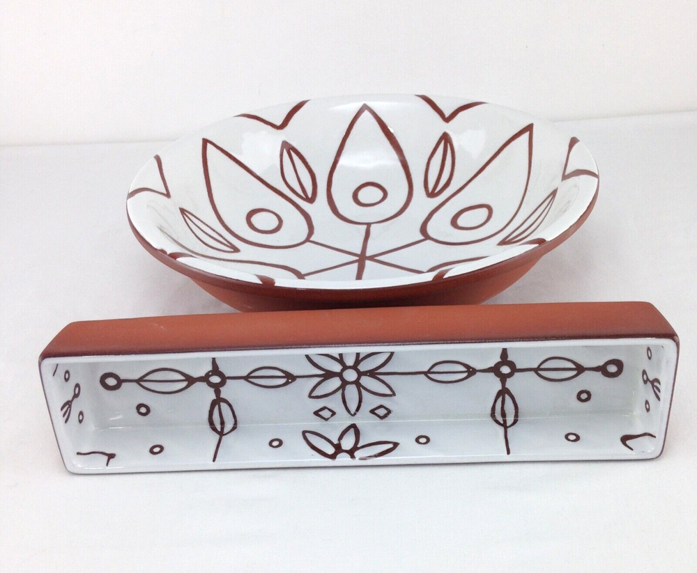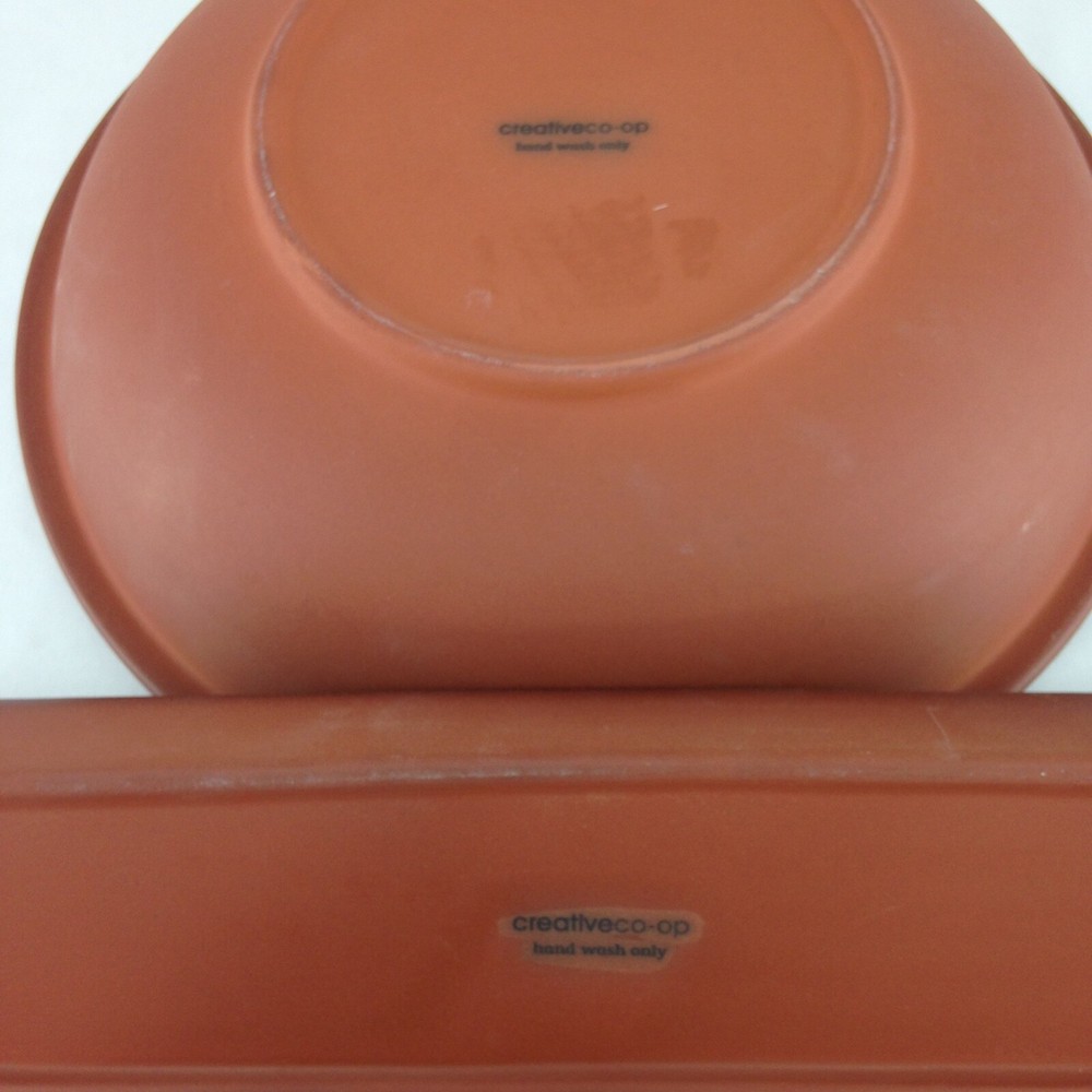Creative Co-Op Terracotta Glazed Large Serving Bowl 12" Diameter & Cracker Dish Serving Bowl is 12" Round x 3 1/4" Tall The Cracker dish is 12" long x 3" wide Hand wash only. Ships USPS Priority Mail...