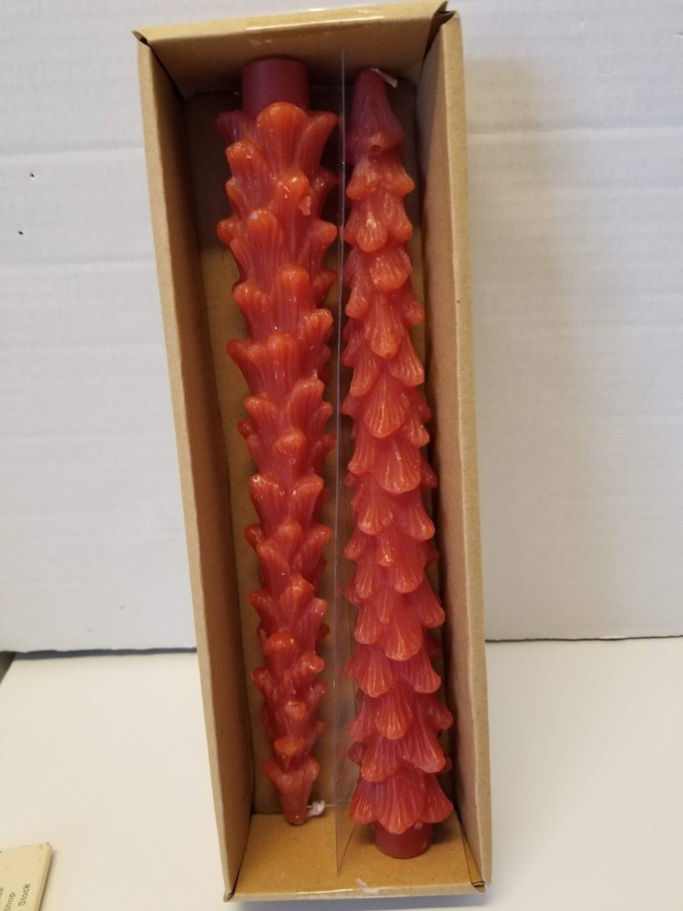 Creative Co-Op 10" Red Tree Taper Candles Set of 2 The condition overall is good. They are unused but some of the tree tips show wear from being jostled in the box.
