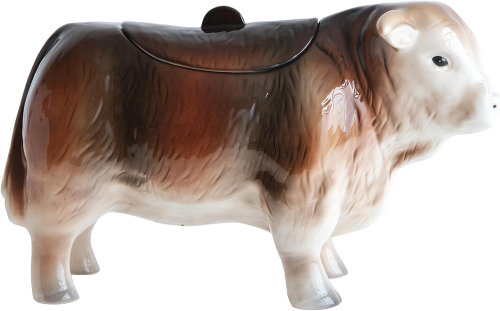 Store New Arrivals Add to Favorite View Feedback Contact Creative Co-Op Vintage Ceramic Cow Shaped Cookie Jar Description Item model number DA9362 Item Weight 2.7 pounds Warranty Description None. Assembly required No Dishwasher compatible No Batteries required No Product Dimensions 12.75 x 5 x 7 inches Care instructions Microwave Safe, Hand Wash Country of Origin China Volume 75 Liters Manufacturer Creative Co-Op Is Discontinued By Manufacturer No Included Components Cookie Jar Made with ceramic Microwave Safe Opening: 4.75"L x 3.25"W x 3"H Hand wash only 12.75"L x 5"W x 7"H Every visitor to your kitchen will comment on this black and brown cow. Imagine how great it will look on your counter full of cookies or other goodies for loved ones. It can also store tea bags or packets of creamer for easy access. Measures 12.75"L x 5"W x 7"H while the opening measures 4.75"L x 3.25"W x 3"H. ABOUT US We offer the best prices around on high quality products. Our E-store includes media such as books, movies, music and games while offering electronics, toys, sporting apparel, clothing, tools, general home, garden items and more. SHIPPING We are always working hard to ensure your package arrives as soon as possible. Please understand that some factors like weather, high postal traffic, and the performance of shipping companies are outside of our control. We offer free shipping to the lower 48 states and ship within 2 business days of payment, usually sooner. We do not accept P.O. Boxes. Please provide a physical address. RETURNS We offer a 30-Day Return Policy on items which you are not completely satisfied with. You have the option for a full-refund or an exchange of the item. No returns are available on items shipped outside of the USA. PAYMENT We accept PayPal. CONTACT US This page content is yet to come Please ad us to your favorite seller and visit again later Thank You CUSTOMER SATISFACTION We try our very best to make sure every customer is completely satisfied. If there's a problem, message us! We're happy to help.