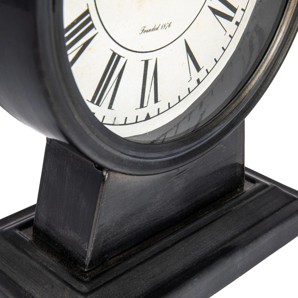 Creative Co-Op Vintage Metal Mantel Clock, Gunmetal Black This vintage-inspired mantel clock exudes eternal elegance with its minimalist take on a traditional silhouette. Its classic design of the clock movement, combined with the sleek gunmetal black finish, creates a visually striking piece that would enhance any interior design scheme. As you admire its clean lines and simple beauty, you'll appreciate the harmonious balance of heritage and innovation that makes this clock both classic and modern. Whether you're drawn to its nostalgic appeal or its modern sophistication, this mantel clock is the perfect finishing touch to any home. It serves not only as a functional timepiece, but also as a stunningly refined piece of art. This antique-inspired mantel clock features a minimalist take on a traditional silhouette, completed with a classically designed movement Display on a mantel, console table, or dresser in a living space of any style from farmhouse to transitional Requires (1) AA battery (not included) Made from metal and glass Clock measures 6.25 inches x 3.5 inches x 8.5 inches Shipping from the USA All of our products are shipped from the USA, ensuring quick delivery to your destination. Payment We offer the following payment methods: PayPal, credit card, bank transfer, and eBay's secure payment system. Free Shipping & Free Returns Shipping within the USA is FREE. Additionally, any return is absolutely free for you. Risk-Free Purchase You have the option to return an item within 30 days without any justification. We cover the return shipping costs! Fast Shipping We ship immediately upon receipt of payment. Generally, the package is delivered within 2-3 days in the USA. If it takes longer, we will contact you. Quality and Costs Made in Europe, USA, China No customs fees or additional charges Total satisfaction guarantee Invoice with declared VAT available upon request in .pdf format Feedback Your feedback is very important to us. After you pay for your purchase, you will automatically receive positive feedback from us.