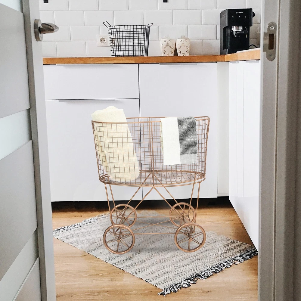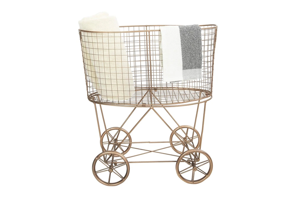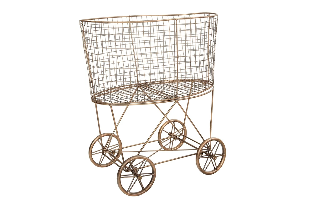 Creative Co-Op Vintage Reproduction Decorative Metal Laundry Basket on Wheels, Copper Product Details Color: Copper Brand: Creative Co-Op MPN: EC0266 UPC: 191009294207 EAN: 0191009294207 Product Dimensions: 25"L x 15.75"W x 27"H Brand: Creative Co-Op Color: Copper Material: Metal Style: Classic,Coastal,Elegant,Farmhouse,Modern Special Feature: Portable Shape: Round Package Information: Basket,Bins,Hanging Baskets Closure Type: Open Included Components: Wheel Product Dimensions: 25"L x 15.75"W x 27"H Brand: Creative Co-Op Color: Copper Material: Metal Style: Classic,Coastal,Elegant,Farmhouse,Modern Special Feature: Portable Shape: Round Package Information: Basket,Bins,Hanging Baskets Closure Type: Open Included Components: Wheel Age Range (Description): Adults Number of Pieces: 1 Theme: Vintage Number of Compartments: 1 Mounting Type: Floor Mount Item Weight: 8.8 Pounds Capacity: 75 Liters Specific Uses For Product: Storage, plant display, and transport in bathrooms, laundry rooms, or living spaces Recommended Uses For Product: Storage and display in bathroom, laundry room, or any other space where clutter needs to be organized elegantly Room Type: Laundry Room, Bathroom Global Trade Identification Number: 07 Manufacturer: Creative Co-Op UPC: 191009294207 Item Weight: 8.8 pounds Country of Origin: China Item model number: EC0266 Assembly required: Yes Warranty Description: None. Batteries required: Yes This decorative, vintage-inspired laundry basket features a sleek, small-scale metal frame atop four oversized, antique-style wheels Fill with hand towels in a bathroom or vanity area for a playful, farmhouse display Do not use harsh cleansers or polish when cleaning Made from 100% iron 25 inches L x 15.75 inches W x 27 inches H Curate an elegant, storied space with Creative Co-Op's thoughtfully crafted collection of decorative boxes, bins, and baskets, designed to transform clutter. Peruse a vast selection of unique, display-worthy pieces created to stylishly streamline a space of any design scheme, including woven baskets, hanging baskets, trays, display boxes, jewelry boxes, trunks, lidded containers, laundry baskets, and so much more. Choose from a wide array of materials from reclaimed wood and paper mache to genuine horn and ceramic, and styles from mid-century modern and coastal to classic farmhouse and cottage. Elegantly stow unsightly odds and ends, or display treasured trinkets with decorative storage that is sure to impress.