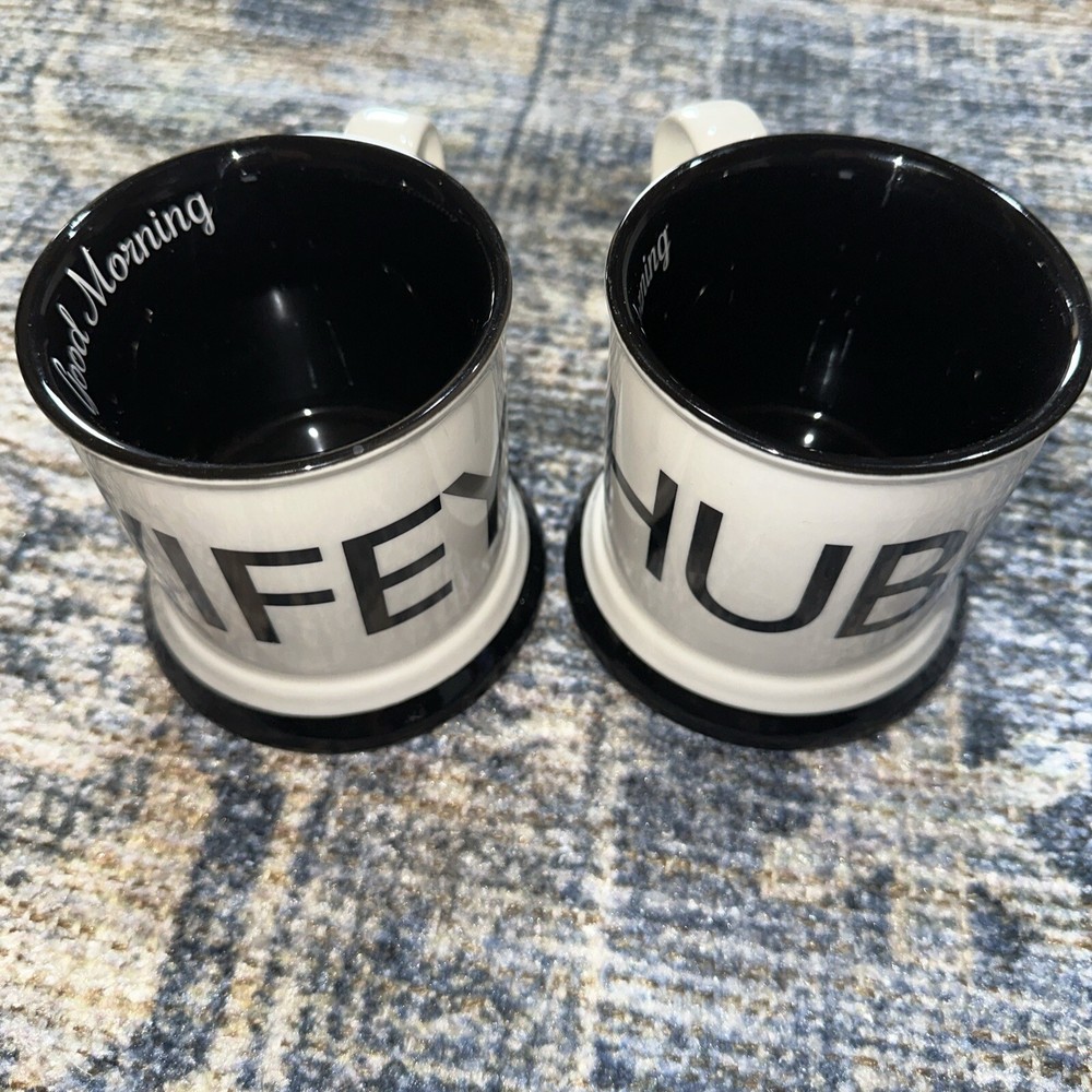 Creative Co-Op Hubby and Wifey Mugs Black and Off White No cracks chips Listing is for both mugs 4” high Stoneware...