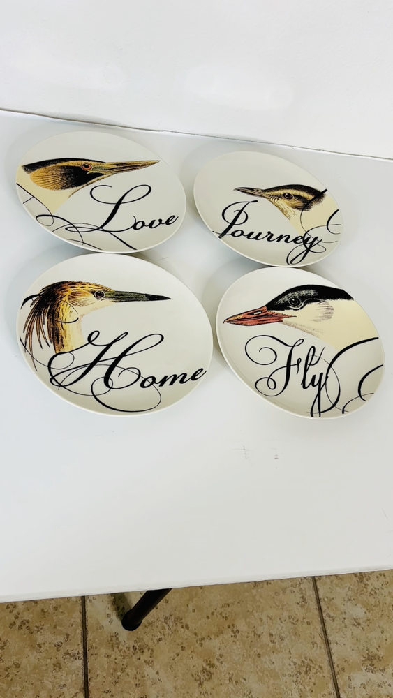 Creative Co-Op Wildlife Birds Home Fly Love Journey Stoneware Plate 8" Set of 4 Microwave/ Dishwasher/ Oven Safe. Pre-Owned Good Condition - No Chips **Please view all pictures** as they are intended for description as well We Require Immediate PAYMENT Thank you for your business ** All Sale Items are handled with Vinyl Gloves and Wiped down with disinfectant wipes. Non-Smoker Home. _____________________________________________________________________________________ Selling good quality Items at a good price......Enjoy Shopping!