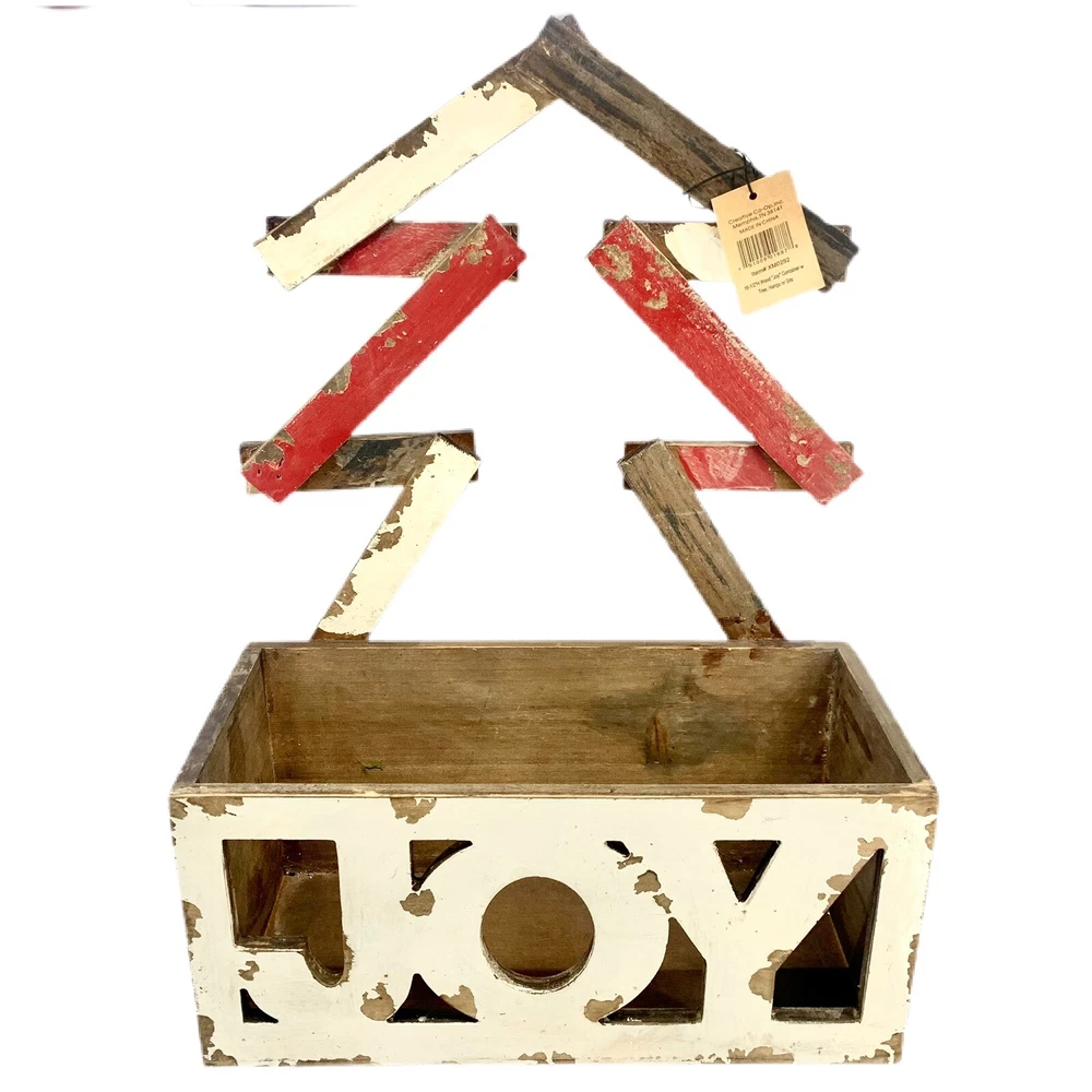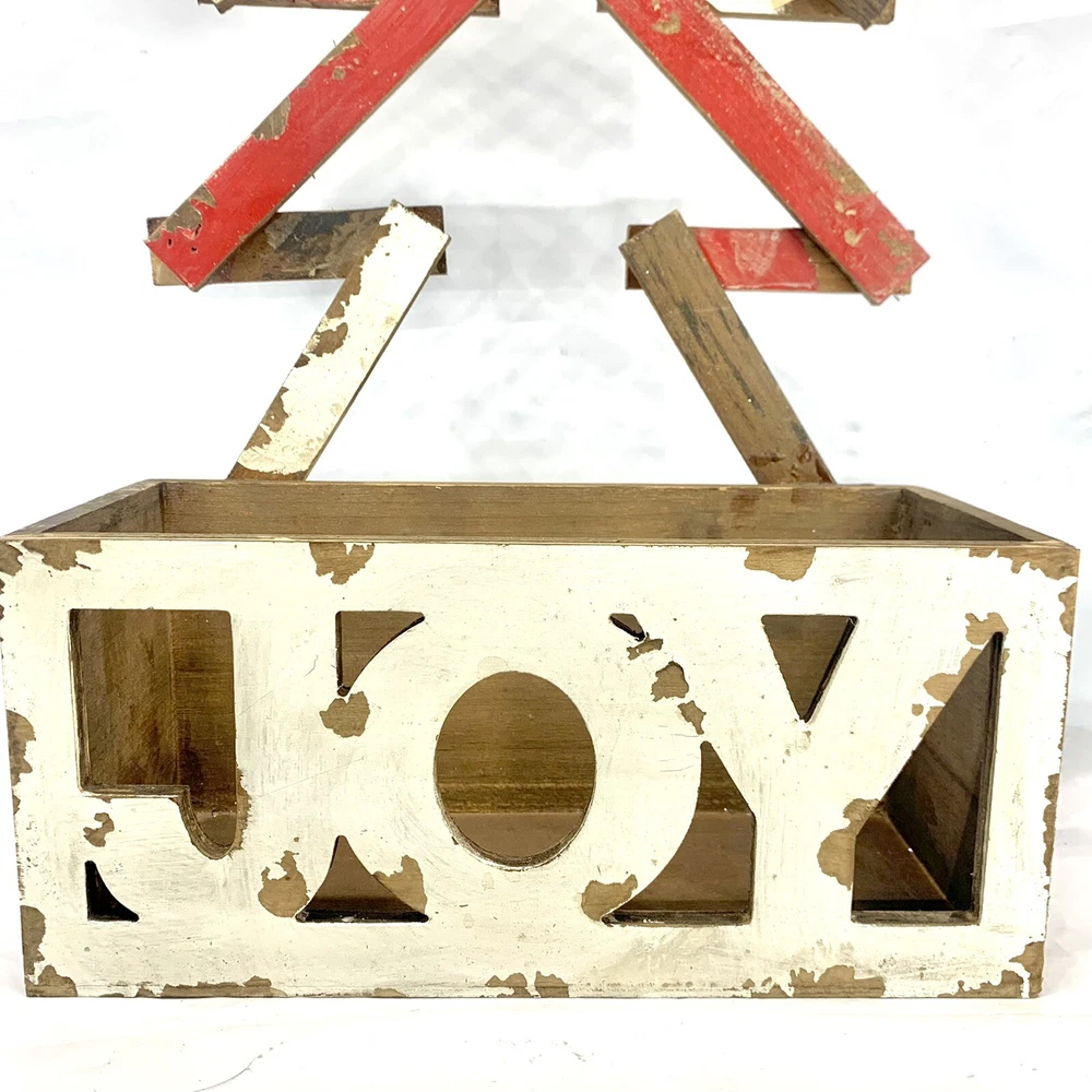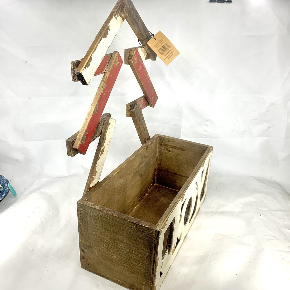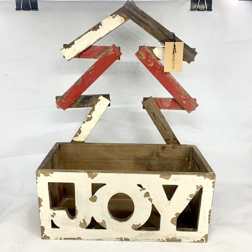 Creative Co-Op Wood Joy Christmas Box Or Planter Table Top Or Wall Decoration. I marked it used only because it’s a little dusty. It does still have the tag. So not sure it was ever used. Rustic, Primitive, shabby, country Christmas decoration. I think it would look great with a Christmas flower arrangement inside of it or a bunch of Christmas balls. So many things could be done with this rustic distressed joy wood Decoration.
