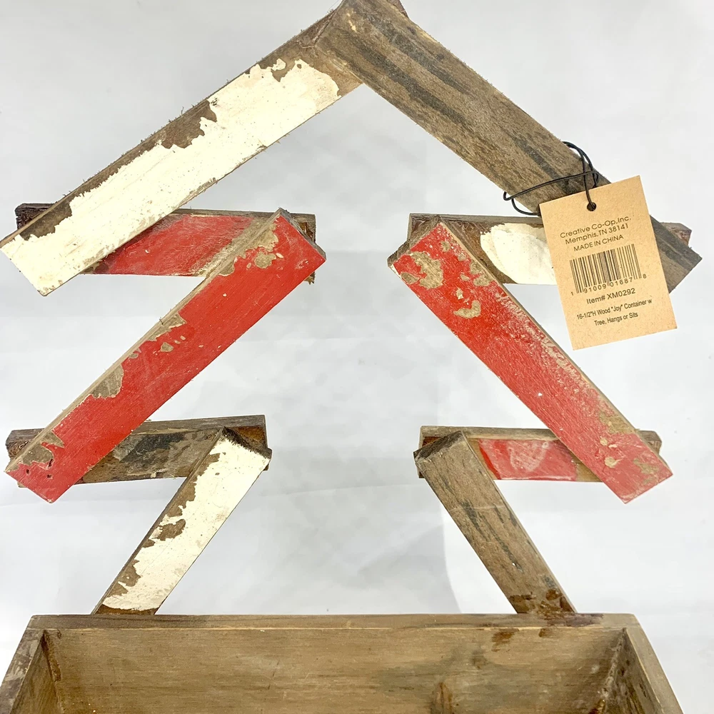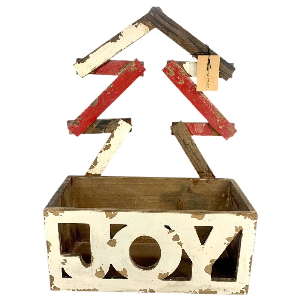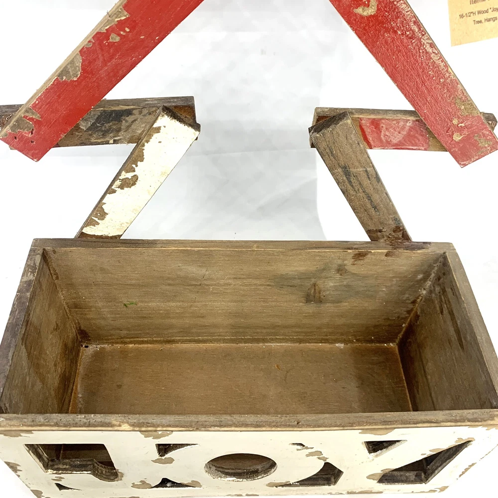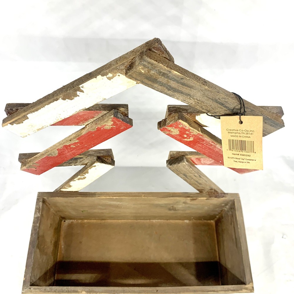 Creative Co-Op Wood Joy Christmas Box Or Planter Table Top Or Wall Decoration. I marked it used only because it’s a little dusty. It does still have the tag. So not sure it was ever used. Rustic, Primitive, shabby, country Christmas decoration. I think it would look great with a Christmas flower arrangement inside of it or a bunch of Christmas balls. So many things could be done with this rustic distressed joy wood Decoration.