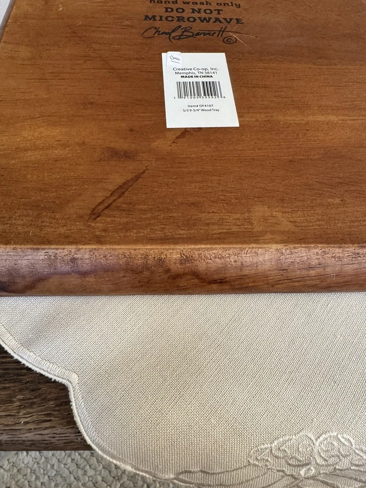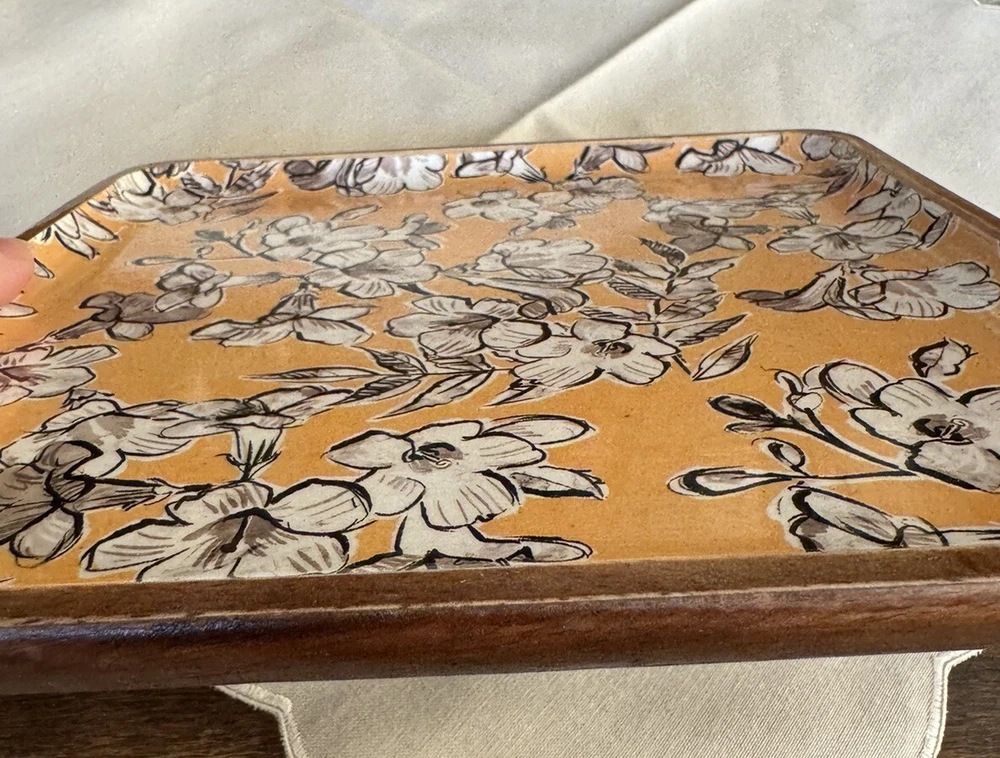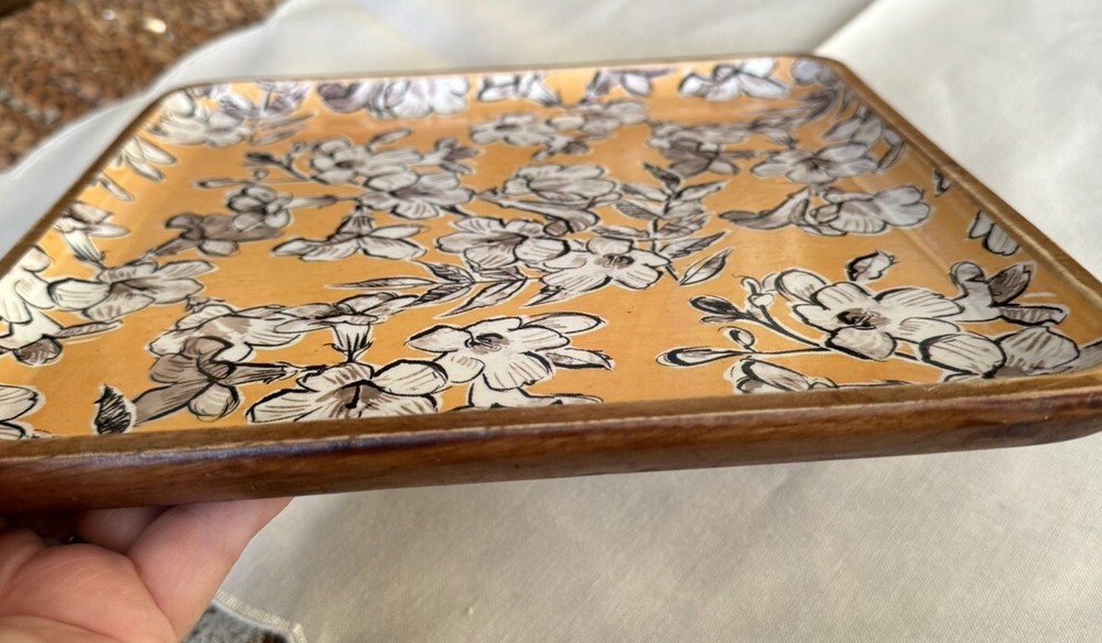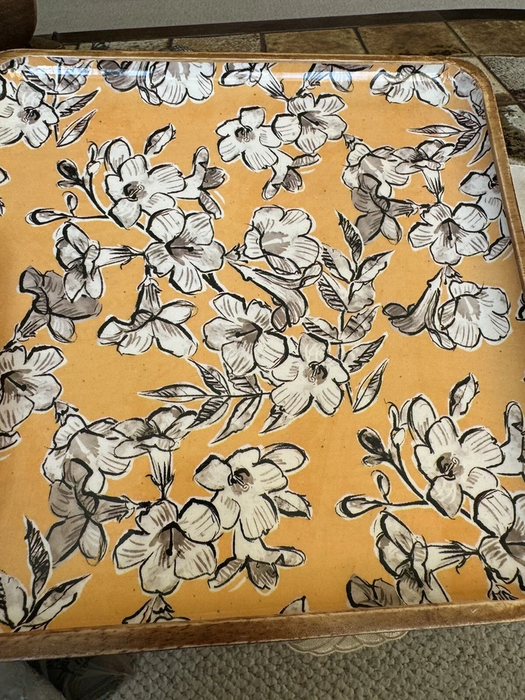 This Creative Co-Op wood tray is a beautiful addition to any home decor. The tray is square in shape and has a medium brown wood tone with a yellow color and white flower design. It measures 9.75 inches in both length and width, making it the perfect size for displaying decorative items or serving food and drinks. The tray is made of high-quality wood and features a unique design that is both elegant and stylish. It is perfect for use in the kitchen, dining room, or living room, and can be used to serve guests or display decorative items. This tray is a must-have for anyone who wants to add a touch of sophistication to their home decor. Lovely item! Please see all photos for details! Thank you for checking it out and please visit our store for more great and unique finds!