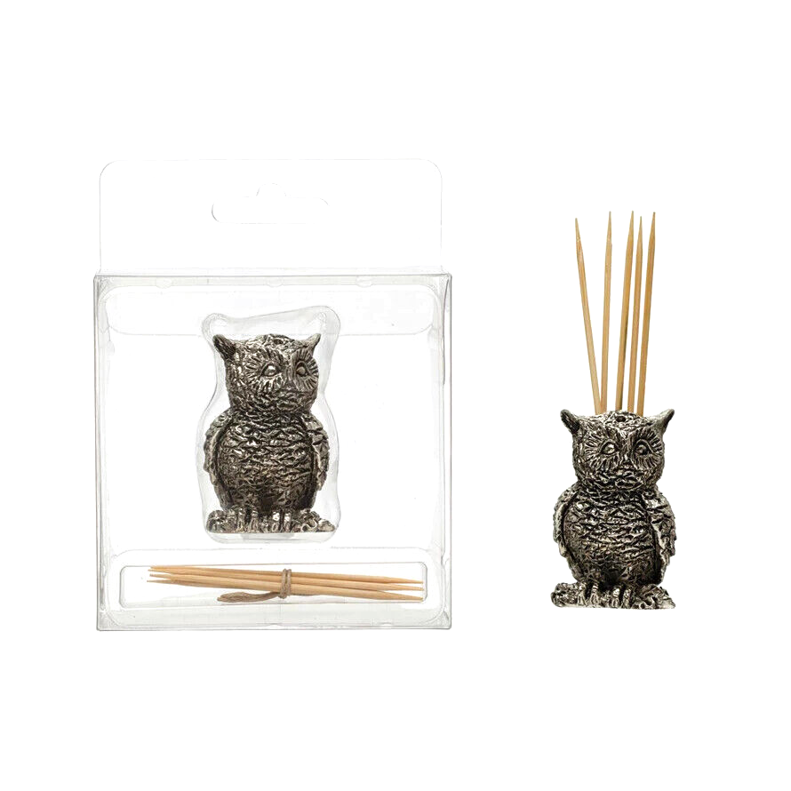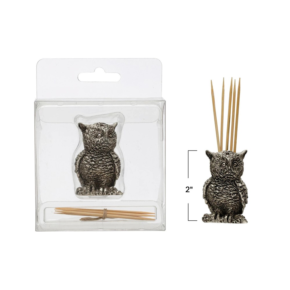Creative Co-Op OWL Toothpick Holder with 6 Toothpicks You receive 1 Boxed Owl toothpick holder along with 6 toothpicks Owl is approximately 2"H x 1 1/4"W Made of Zinc Alloy Brand new in box Please look carefully at all pictures and ask any questions before buying as there are NO RETURNS Shipping Discount : When purchasing ANY items in my store, PLEASE do the following: Put each item you want to purchase in your cart by clicking "Add to Cart". When you are finished adding all the items you wish to purchase, click on the Cart at the top of the page. Then click on "Go to Checkout" and the shipping discount will be automatically applied. You are only charged full price shipping on one item in your cart (the one with the highest shipping cost if different kinds of items are purchased) If you have any problems, please let me know. For this particular item, Shipping cost for first one is $4.50. Any additional items in this listing will have a shipping cost of $2.00 when purchased and paid for in the same order at the same time . This is automatically calculated at check out. I DO NOT refund shipping charges when items are purchased separately.