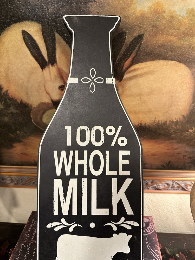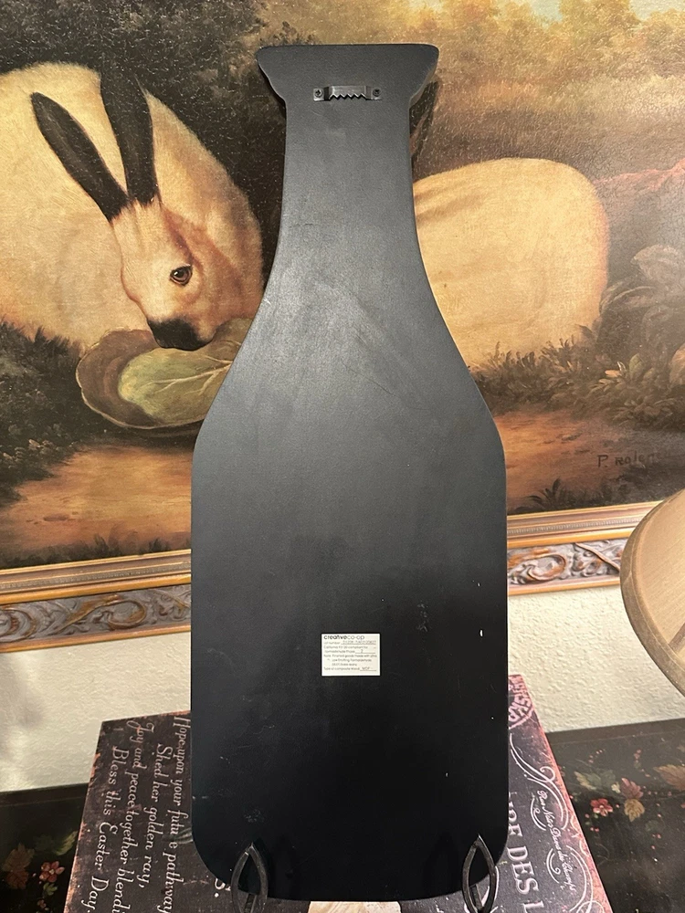 This Creative Co-Op milk bottle shaped plaque is a must-have for any collector. The black and cream design adds a touch of elegance to its cow motif, making it a great addition to any kitchen or collection. Measuring 20 inches in length and 7.5 inches in width, it is the perfect size for hanging. and it comes with a California Prop 65 warning. Its country/region of manufacture is unknown, adding to its mystery and allure. Don't miss out on this unique piece! Wood is .75 thick Charming! like new, supposed to be distressed, with paint flecks. Please see my pictures for details and condition. Perfect for your farmhouse or cottage decor. It’s neutral so it goes with anything. Made with wood (MDF) . Creative Co-Op makes very nice, quality home decor 😊 Inventory code #8893 SHIPPING is a flat $18.00 to continental continuous USA 🇺🇸 Love ❤️ other items in our store? We will gladly combine shipping All sales are final. We don’t do buyer’s remorse, but we do take care of our clients. Buy with confidence We reserve the right to ship via USPS Ground Advantage, FedEx or UPS depending on where you live, weight and size of the package 📦 THANK YOU for looking at our beautiful finds