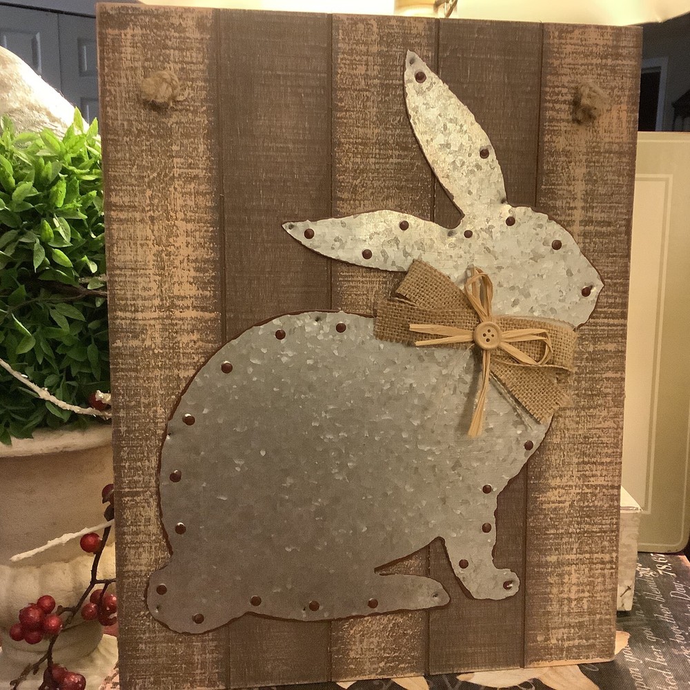 Creative Co-Op~Wood Plaque w/Galvanized Bunny/Rabbit 🐇~13 3/8”H x 10.5”W~NEW w/Tag. Super cute and High quality~Creative Co Op is known for their unique and quality designs~Sold at boutiques everywhere~Perfect for your farmhouse or cottage decor~It is made of a wood composite: Plywood Inventory code #4146 SHIPPING is a flat $3.99 to continental continuous USA 🇺🇸 Love ❤️ other items in our store? We will gladly combine shipping ~ All sales are final. We don’t do buyers remorse, but we do take care of our clients~ Buy with confidence ~ We reserve the right to ship via first class mail, priority rate, FedEx or UPS depending on where you live, weight and size of the box 📦 Thank you for looking at our beautiful finds ~