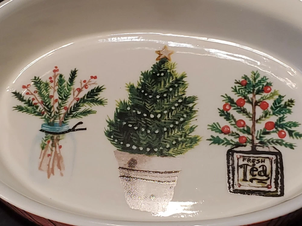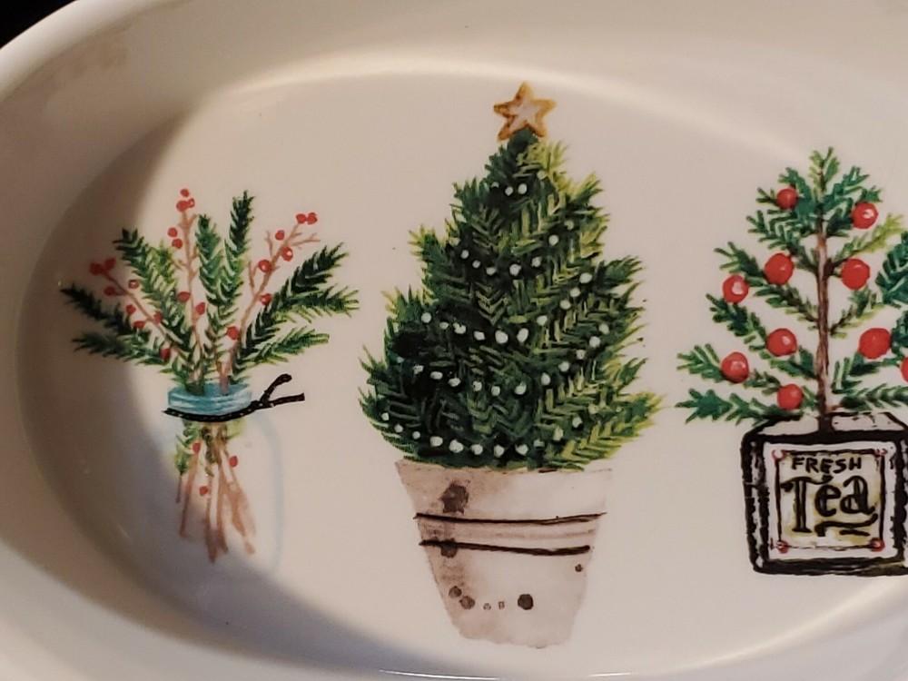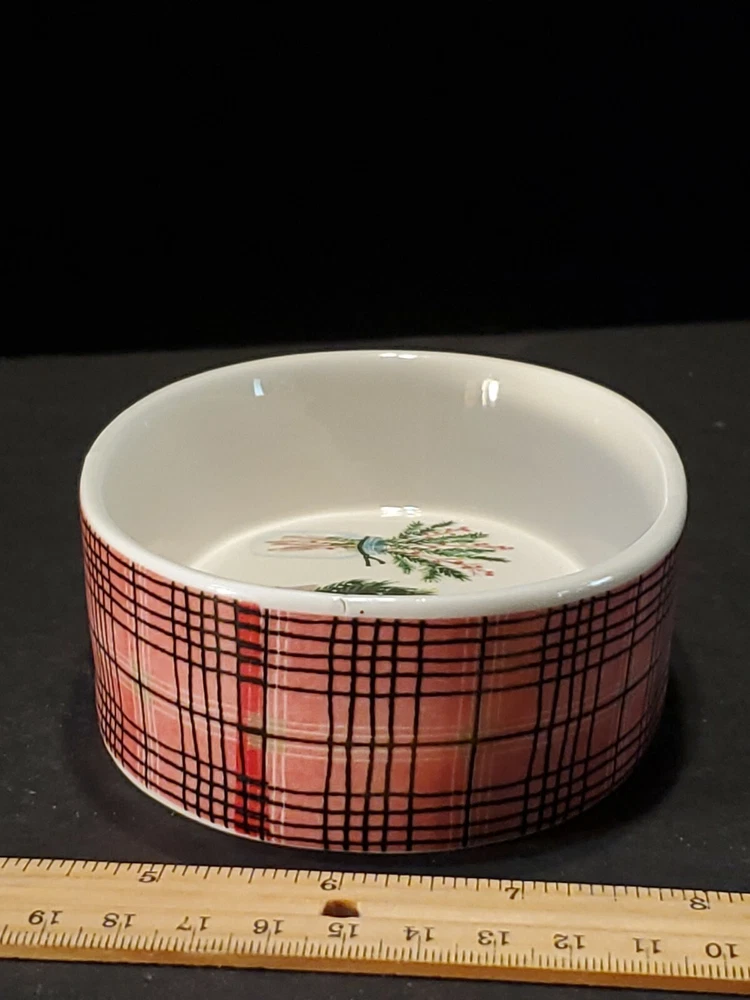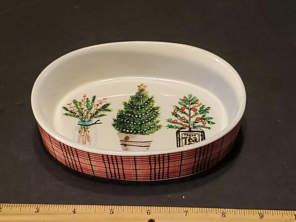 Creative Co-op 6"×4"×1.5" Oval Ramekin 3 Christmas Trees Plaid Trim Soap/Trinket/Candy Dish. New With Tags. From a smoke-free home.