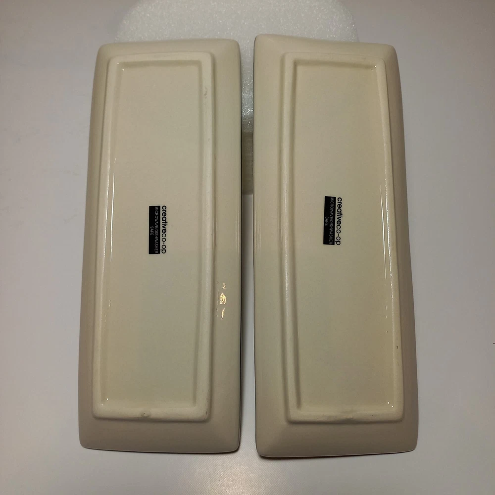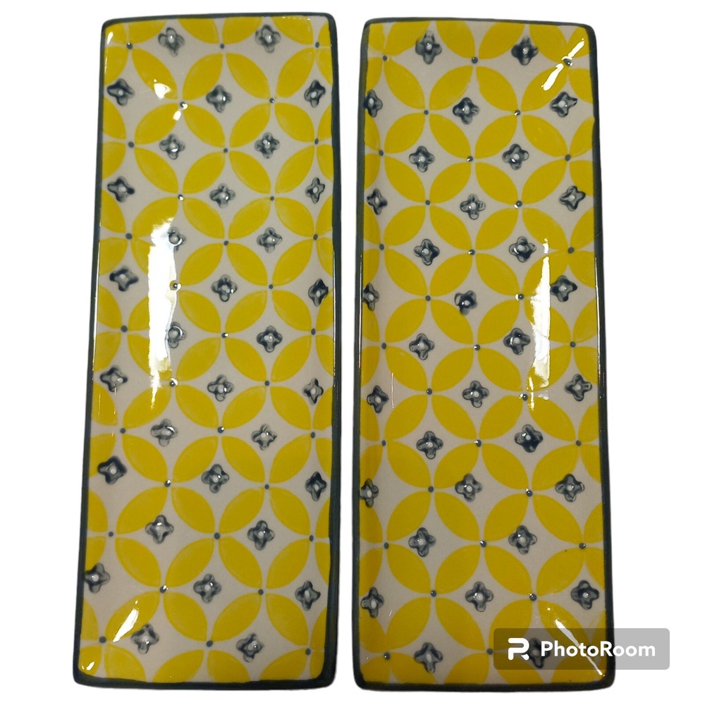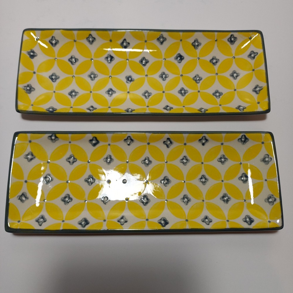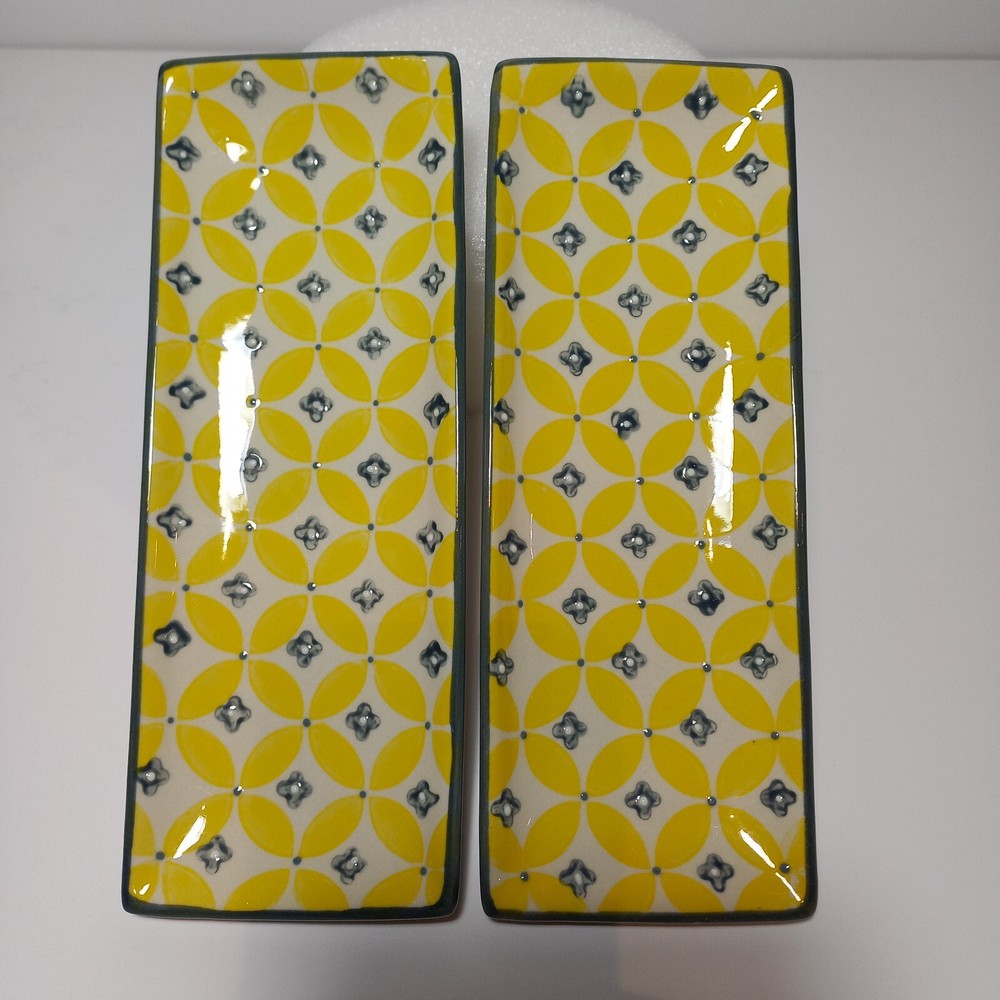Creative Co-op 9"×3.4" Stoneware Ceramic Trays Hand Stamped Design Set Of Two 2 I will provide tracking information 😀 Thanks....