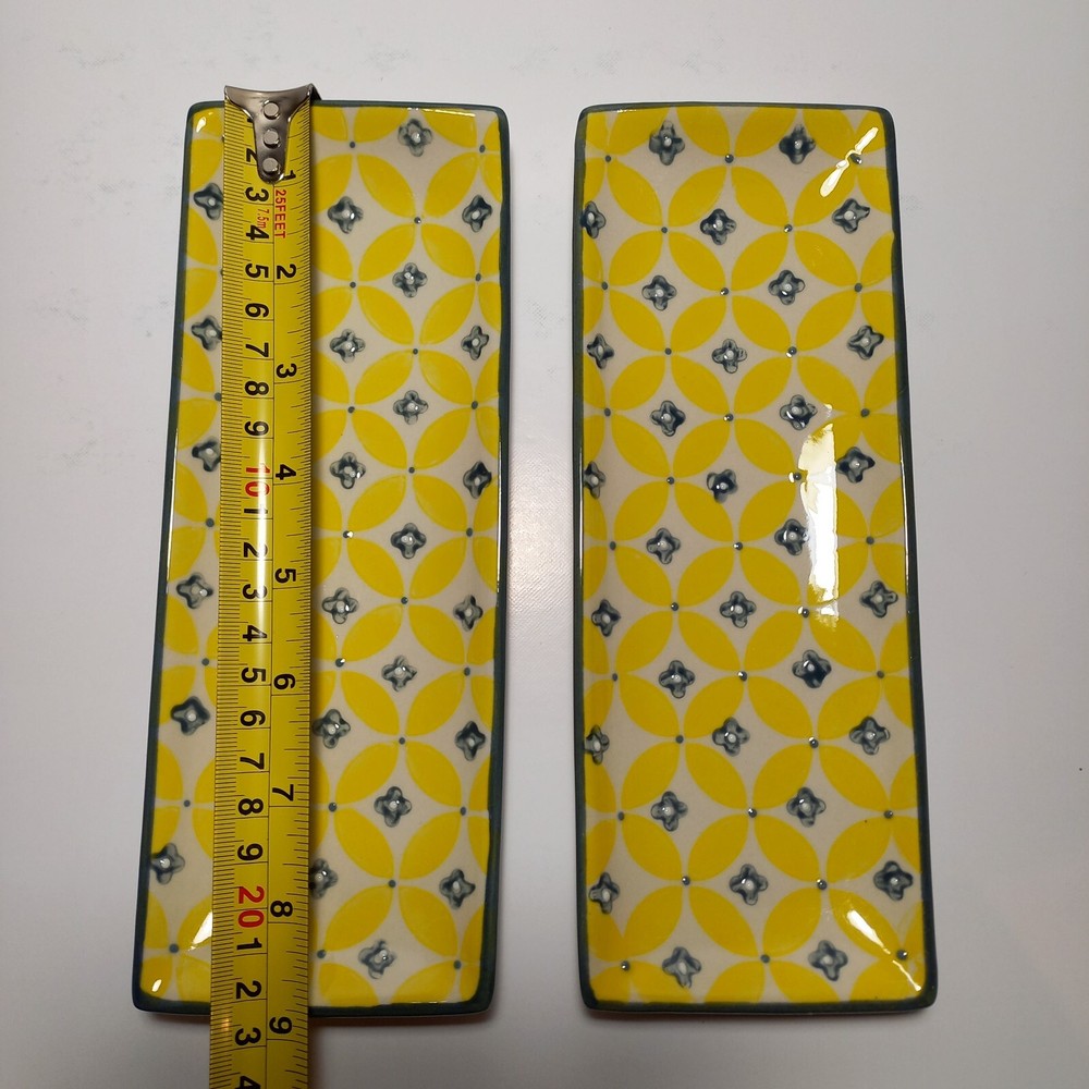 Creative Co-op 9"×3.4" Stoneware Ceramic Trays Hand Stamped Design Set Of Two 2 I will provide tracking information 😀 Thanks.