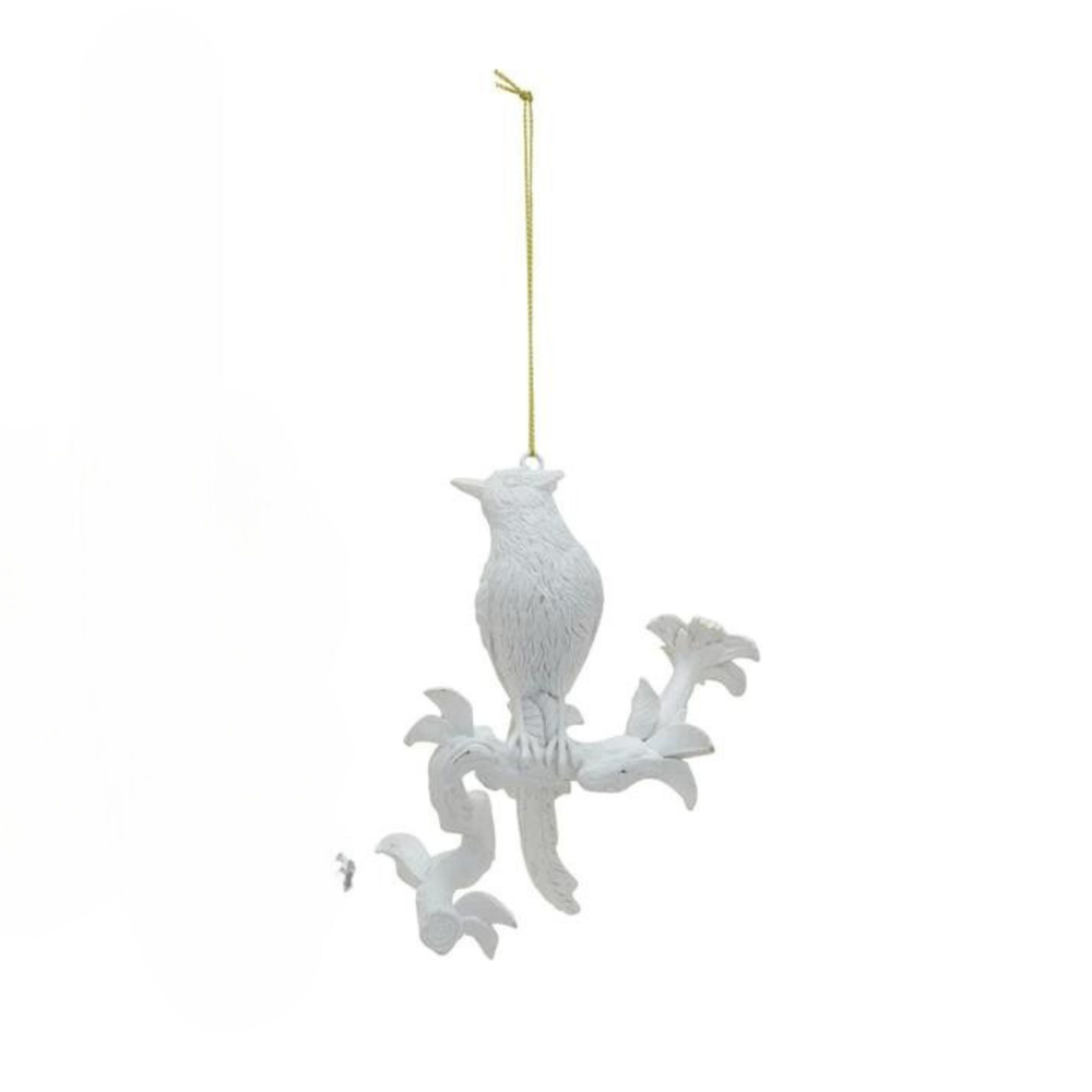 Dimensions: 5.3 x 2.6 Material: Resin Color: White Indoor Use : While resin is durable, it’s best to keep the ornament indoors to protect it from extreme weather conditions and direct sunlight, which can cause fading over time.