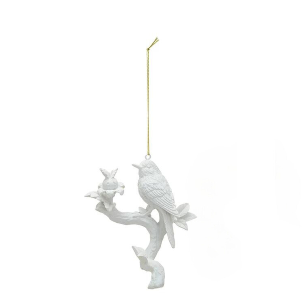 Creative Co-op Closed-Wing Bird on Branch Resin Ornament