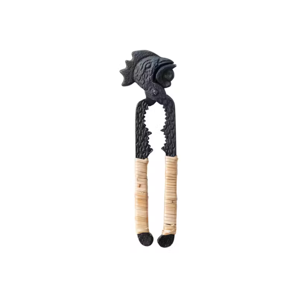 Dimensions : Typically, it measures around 7-8 inches in length, making it easy to store in a drawer or display on a countertop. Material : The nutcracker is made from durable cast iron, ensuring it can handle tough nuts with ease. Handles : The bamboo-wrapped handles provide a comfortable grip and add a natural element to the overall design