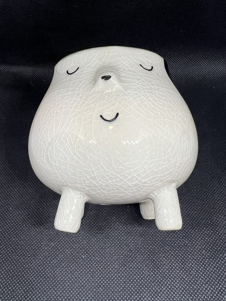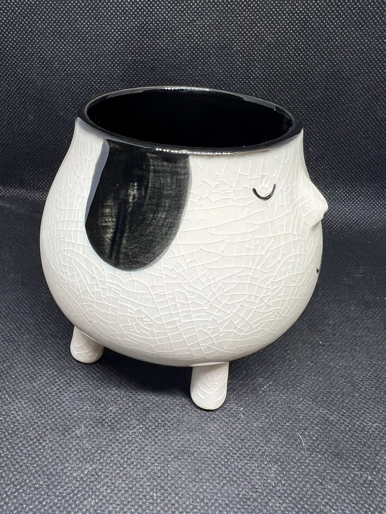 This Creative Co-op Ceramic Dog Planter is a charming addition to any home decor. The crackle finish adds a rustic touch to the piece, while the white color complements any color scheme. The planter is made of high-quality ceramic, ensuring durability for years to come. The production technique used for this art pottery is pottery, making it a unique and handmade item. The planter is designed in the shape of a dog, making it a great gift for animal lovers. It can be used both indoor and outdoor as a decorative piece or a functional planter. This item is in excellent condition with no chips or cracks. Purchase today and add a touch of whimsy to your home decor.