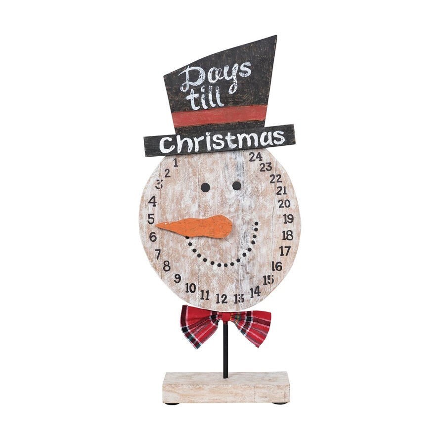 Snowman Head Advent Countdown - XM9713 【 Creative Co-op 】 11"L x 3-1/2"W x 23-1/4"H Mango Wood Snowman Head Advent Countdown on Stand with Bow Tie and Movable Carrot Nose "Days Till Christmas", Multi-Color Dimensions: 11.0 x 3.5 x 23.2 Material: 80% Mango Wood, 10% Iron, 10% Cotton Care Labels: Wipe With Dry Cloth We are a store. All items are new in mint condition unless stated otherwise above. All items come in their original packaging with all paperwork. We will inspect items to confirm they are mint or upon request. Insurance, shipping & handling in U.S. is FREE. Payment can be made with PayPal, Visa, MasterCard, Discover or American Express. We ship through UPS ground; all packages are shipped 1 to 2 days after payment is received and are insured for their full value. Auctions must be paid with in 10 days of ending or a negative comment will be posted. We do NOT accept "best offers". Our best price is listed on eBay . We do NOT offer Layaways on eBay auction items. On all sale items, shipping and handling charges will apply. We do combine shipping charges for multiple items purchased. Please wait to pay for your items until we send you an invoice to obtain the combined shipping charges. Shipping outside of the United States is additional. As of February 1, 2010, we do not ship to all countries. Please request a shipping charge to your location before bidding, we charge actual shipping rates thru the USPS. We are NOT responsible for oversea custom charges, they are the responsibility of the buyer per eBay & PayPal rules. Pick Ups: We do welcome pick ups at our store after the item has been purchased thru eBay. Returns: If you wish to return an item you purchased from FairyTales-Inc, you must notify us within 3 days of receiving the item. Shipping fees will not be refunded. Buyer is responsible for fees incurred to return items to FairyTales-Inc. Credit for the item will not be issued until FairyTales-Inc receives the item in its original condition it was received. We will not accept items that are returned with out notice. All returns must have a FairyTales-Inc return Authorization number on the box. Damages caused in shipping must be report to FairyTales-Inc with in 3 days after the item is received. FairyTales-Inc will issue a full refund or replace the item after the shipping claim has been issued. Damages: If you receive a damaged item, please contact us with in 3 days after the item is received. We will replace the item immediately if in stock along with placing a claim with the shipping carrier or the manufacturer of the item. DO NOT ship this item back to us. We will issue a shipping call tag for the item to be picked up or destroyed. We will not accept items returned without notice. If we do not have the item, buyer is welcome to exchange the item for another of equal value. Or we will issue a full refund on the damaged item. Holiday Shipping: For the Christmas Holiday, Orders must be placed and paid for by 2:00 PM on December 15, to be received by December 24, in the Continental United States. Orders will be shipped via Fed Ex or USPS unless requested otherwise. Shipping is NOT guaranteed due to unforeseen weather conditions and shipping carriers requirements. Orders shipping International via the Fed Ex or USPS for the Christmas Holiday must be placed and paid for by 2:00 PM on November 30, to be received December 24. Again, shipping is NOT guaranteed due to unforeseen weather conditions and shipping carriers requirements. We will happily expedite shipping (next day, second day or three day select) with an additional charge to the buyer. ** Please Note: Stock photo from manufacturer that may not match exactly.**