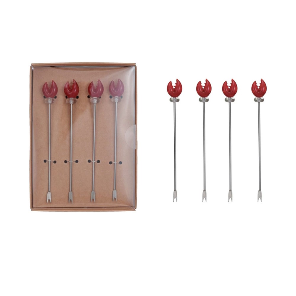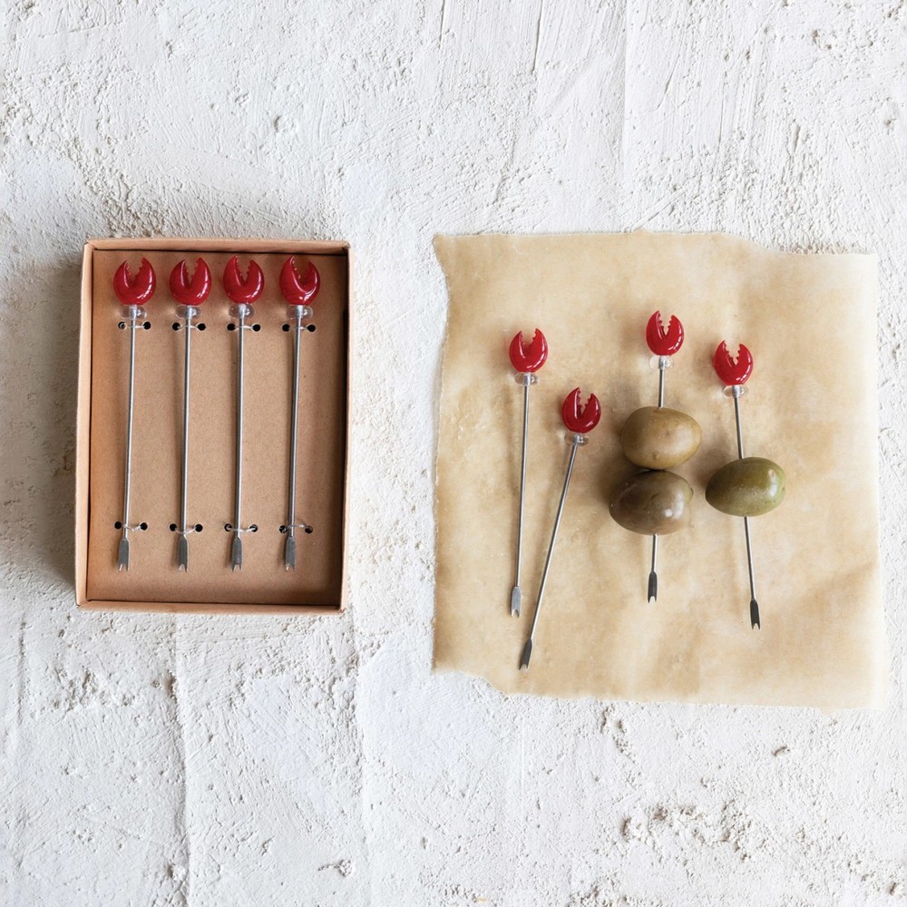 Material: Stainless Steel Style: Hand-Blown Dimensions: 4.3 x 5.9 Product Attributes: Food Safe The picks are easy to clean and store, and they come in a boxed set of four....