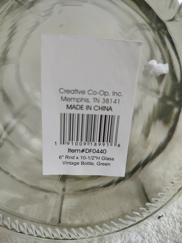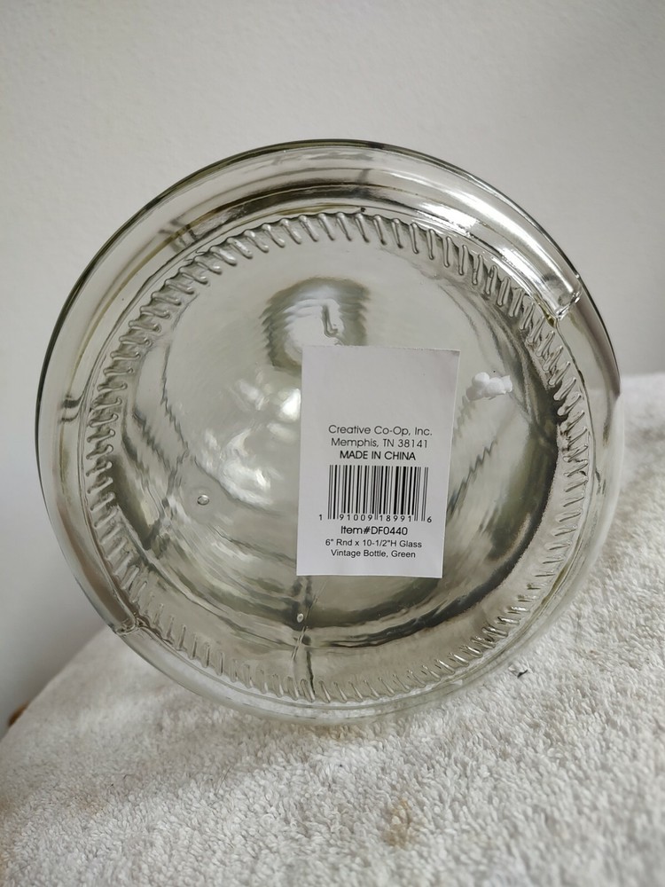 Creative Co-op DF0440 6" x 10.5" Carboy Glass Vintage Bottle Green. NEW. 229b S...