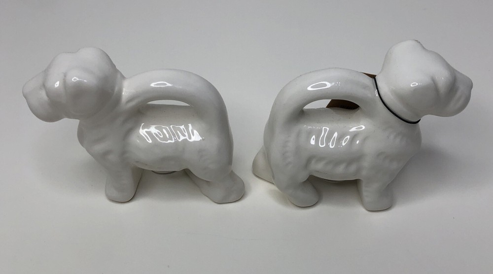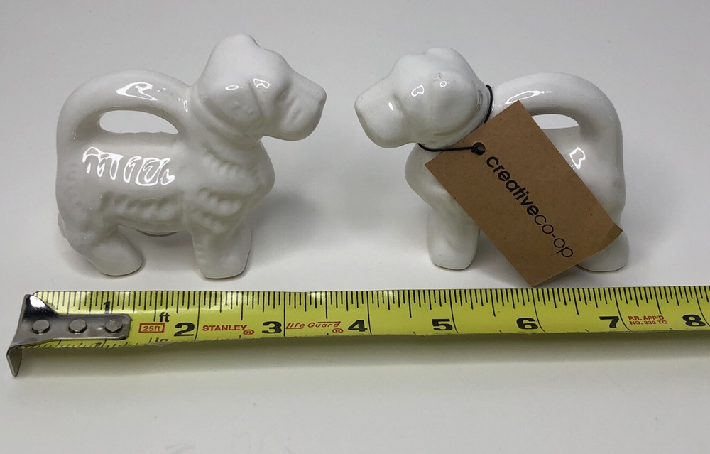 Creative Co-op DF1052 White Ceramic Dog Shaped 2 Pieces Salt & Pepper Shakers. See pictures. Box 1