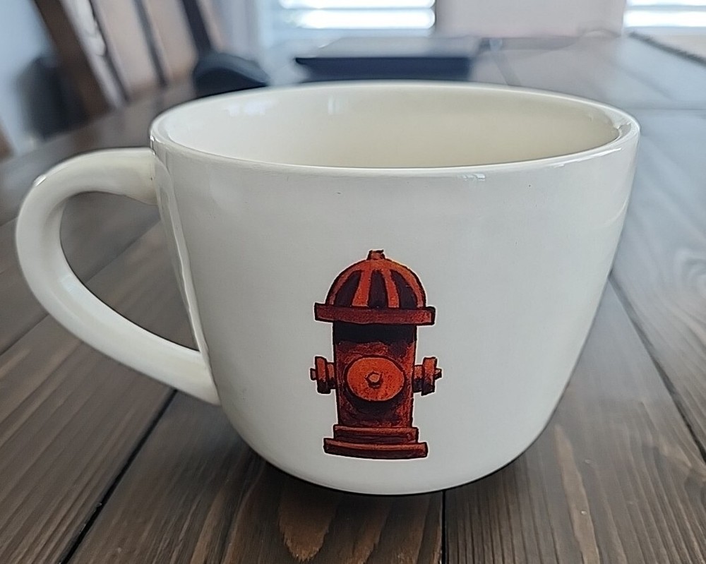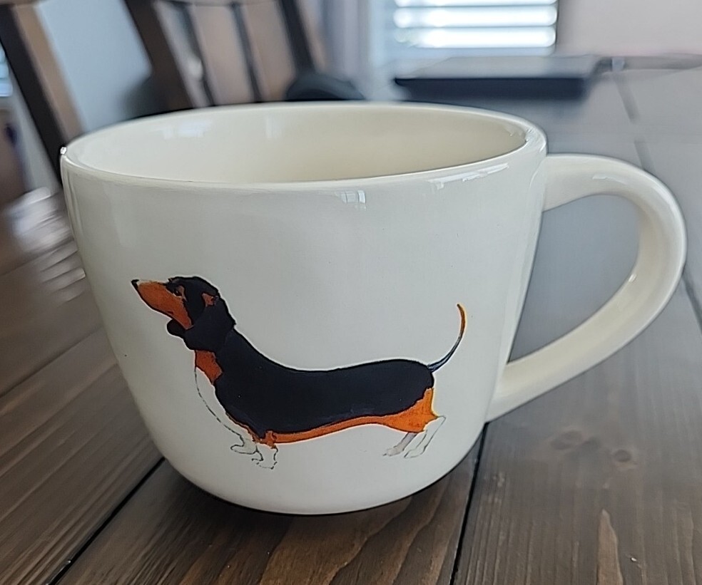 This Creative Co-op coffee mug features an adorable white dachshund design sitting next to a fire hydrant and is made of high-quality ceramic and porcelain material. The mug has a round shape with a 4" diameter and a height of 3.5 inches. It is perfect for hot or cold beverages and can hold up to 12 ounces. The mug is an original piece and is part of the Dachshund Mug collection designed by Avery Tillmon. It is a great addition to any kitchen or as a collectible item. Use it for your morning coffee or tea and enjoy its unique and cute design.