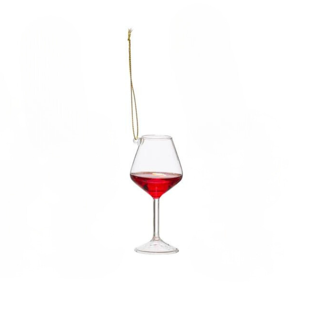 The ornament measures 2.25 inches in diameter and 4.0 inches in height, offering a delicate yet noticeable charm. Glass glowing in festive red with a glossy finish that catches the light.