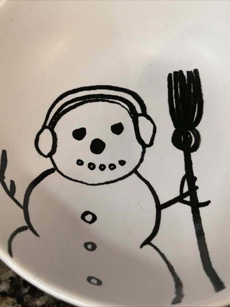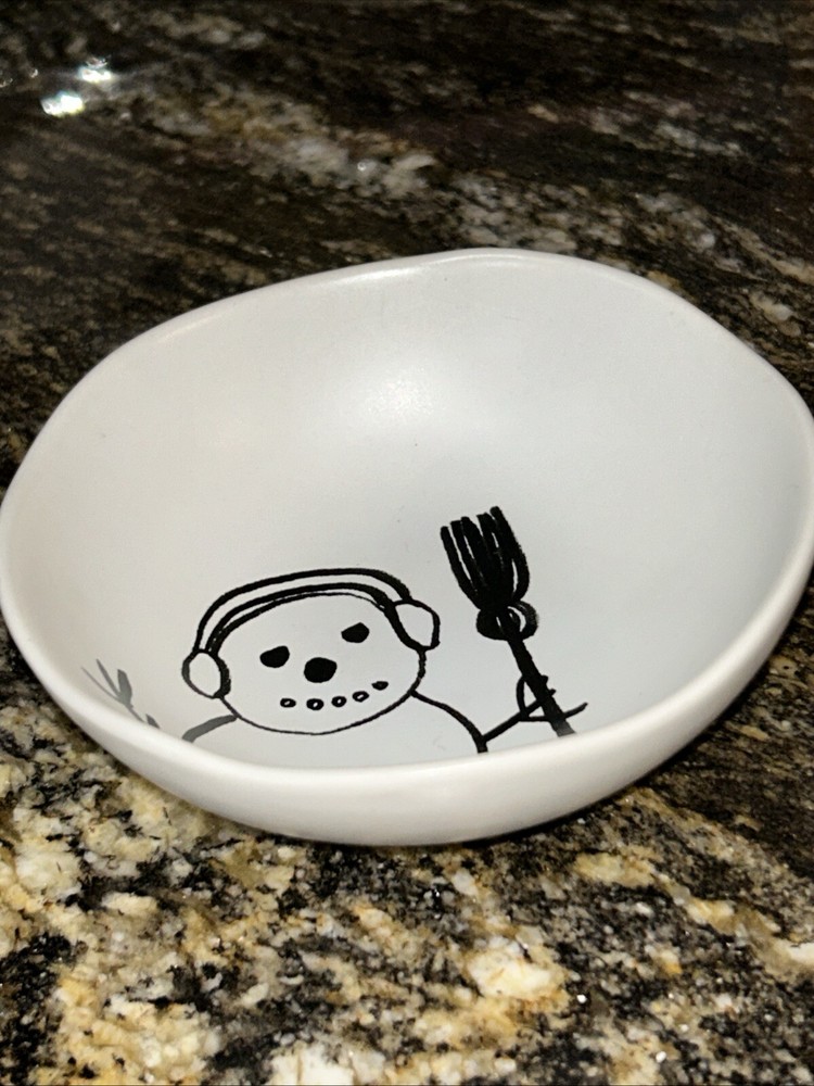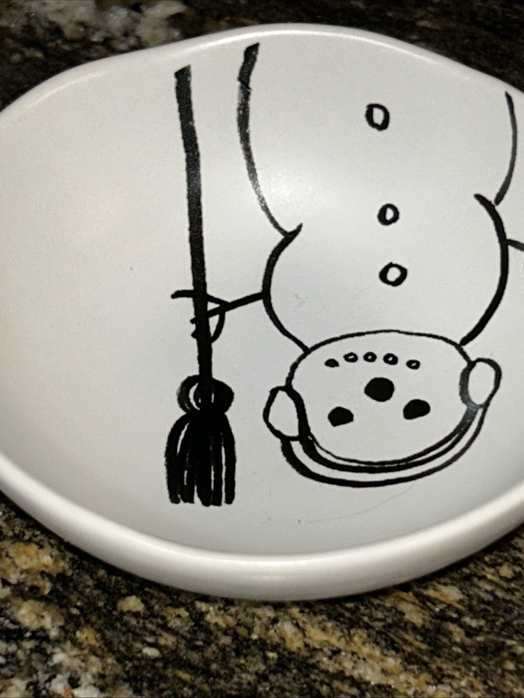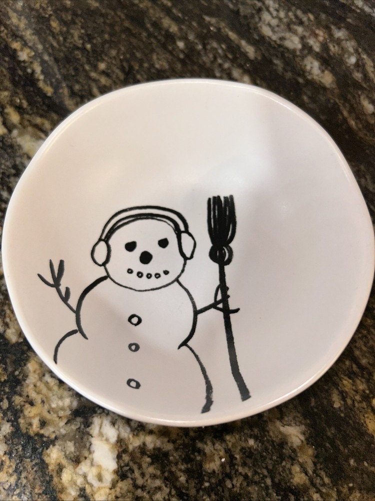 This is a Creative Co-Op candy dish featuring a snowman design. It is made of glass and is dishwasher safe. Perfect for serving candy, holding trinkets, or storing keys....