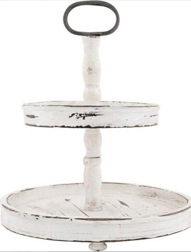 CREATIVE CO-OP EC0125 DISTRESSED WOOD 2-TIER TRAY- New in opened box.