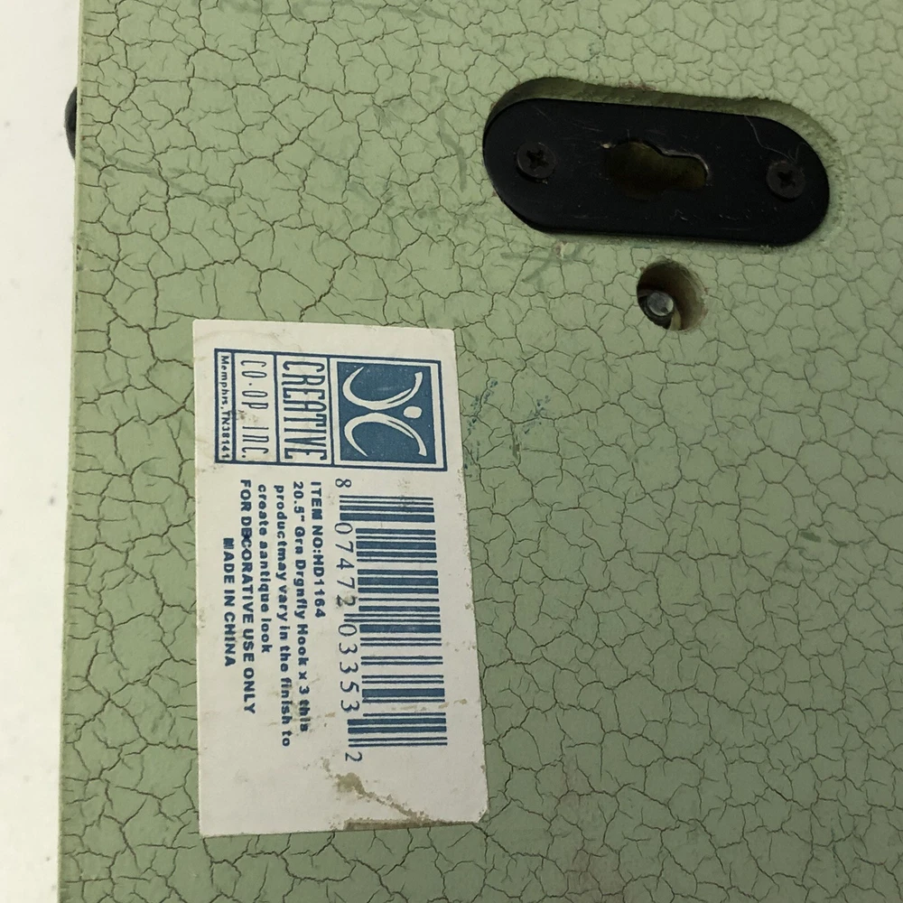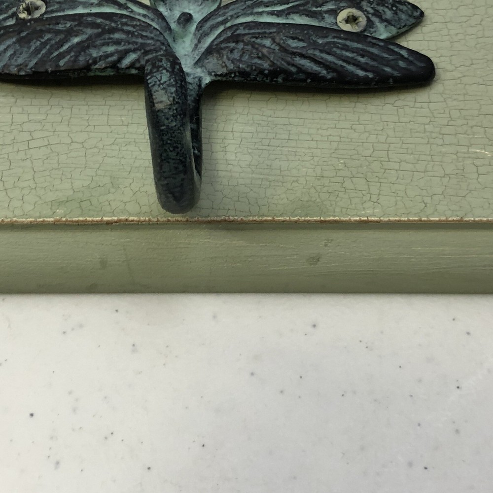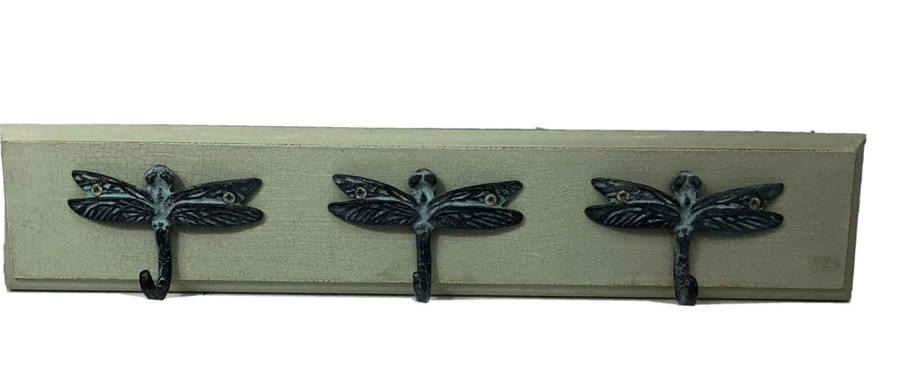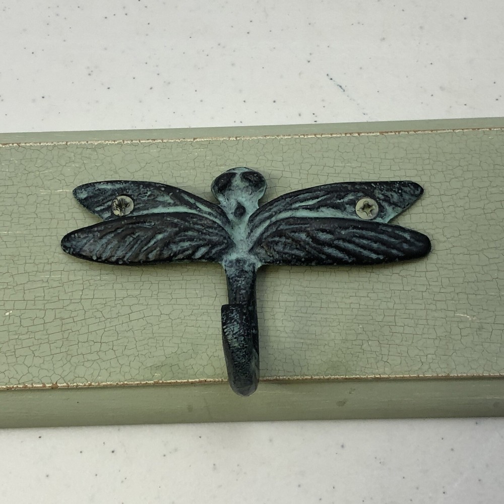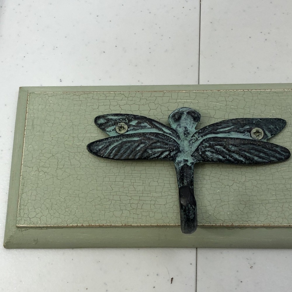 Creative Co-op Dragonfly 3 Hook Rack Light Green Crackle Wall Plaque. Condition is "Used", does have some light distressing. Approx measurements: 21” x 4” x .75” Shipped with USPS Priority Mail. Thank you!