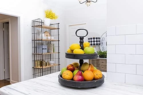 Creative Co-op EC0112 Distressed Wood 2-Tier Tray with Metal Handle, Black Features Large tray is 15" wide with 6" between center pole and side allowing larger items to be placed on bottom Small tray is 10" wide with 3. 75" between center pole and side providing ample space for a variety of items Save space on the counter by placing items on this 2-tier tray Handle allows for easy transportation from counter to table or room to room 15"L x 15"W x 18. 5"H Description Add a fresh touch of décor to the kitchen with this amazing 2-tier tray. Both trays allow ample space for displaying items. Fill it with spices and easily move to the area of the kitchen they are needed. It will also make a perfect centerpiece for the table. Place a colorful placemat under it and fill the bottom tray with decorative greenery over a row of battery operated lights. Fill the top tray with salt, pepper, sugar and creamer. About Us We are uniquely positioned to offer the best prices on thousands of America's most popular items. No matter where your shopping journey takes you, our mission is to bring product expertise and quality items at prices you can’t find anywhere else. Shipping Standard Delivery Standard orders are processed once payment method authorization and verification have been obtained. Orders shipped via standard delivery will typically ship within 1-2 business after receiving payment method authorization. Returns 30-Day Free Returns and Money Back Guarantee Return Policy If you are not satisfied with your purchase for any reason, please return your item in its original, unused condition (including all original packaging and tags) within 30 days for a full refund. We offer free returns for all items within 30 days of your purchase. To make a return, you must obtain a return authorization number (RA#) by contacting us at via eBay Messages. You will be notified by email to your registered email address on eBay and to eBay Messages within 48 hours with your RA#. You should expect to receive your refund within 6 Business Days upon verified and tracked receipt of your return package; however, in most cases you will receive a refund more quickly. Contact Us We are committed to providing our customers with the best possible online shopping experience. If we've fallen short in any way, or if there's anything we can do to assist or improve your shopping experience with us, we want to know! Please reach out to us by messaging us through the eBay messaging portal. We'd love to hear from you! Payment Immediate payment is required upon selecting "Buy It Now" or upon checking out through the cart. We accept payment via PayPal, credit card, or PayPal Credit.