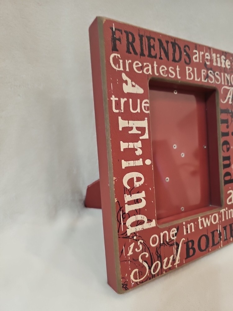 Showcase your cherished memories with this Creative Co-op HOME Red Picture Photo Frame. The rustic rectangular frame measures 9 x 12 inches and is made of sturdy wood material. Its Americana theme and farmhouse style make it perfect for any occasion and suitable for all photo sizes of 5" x 7". Display your favorite photos in this beautiful and functional frame from Creative Co-Op. Pre-owned