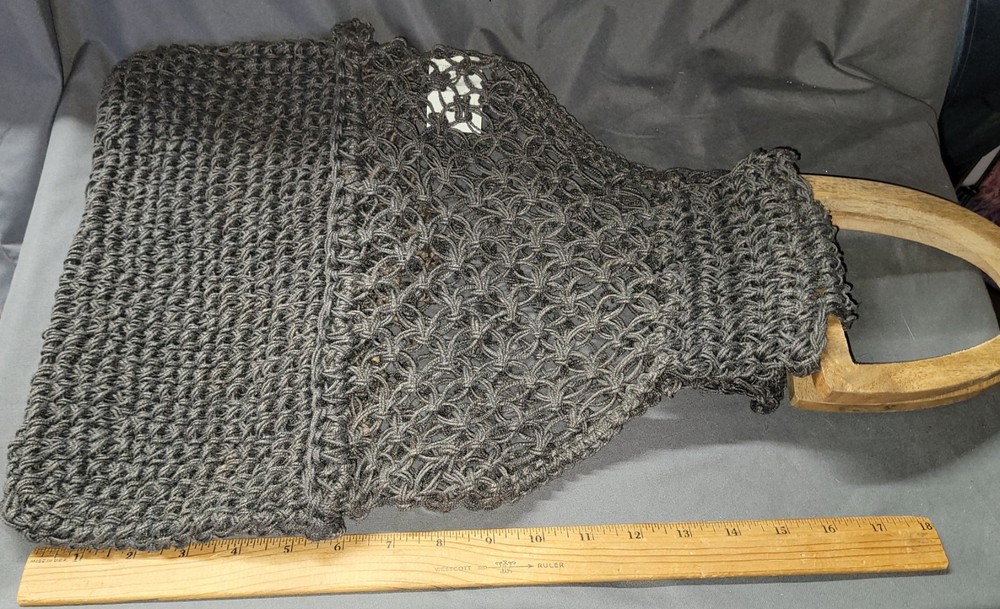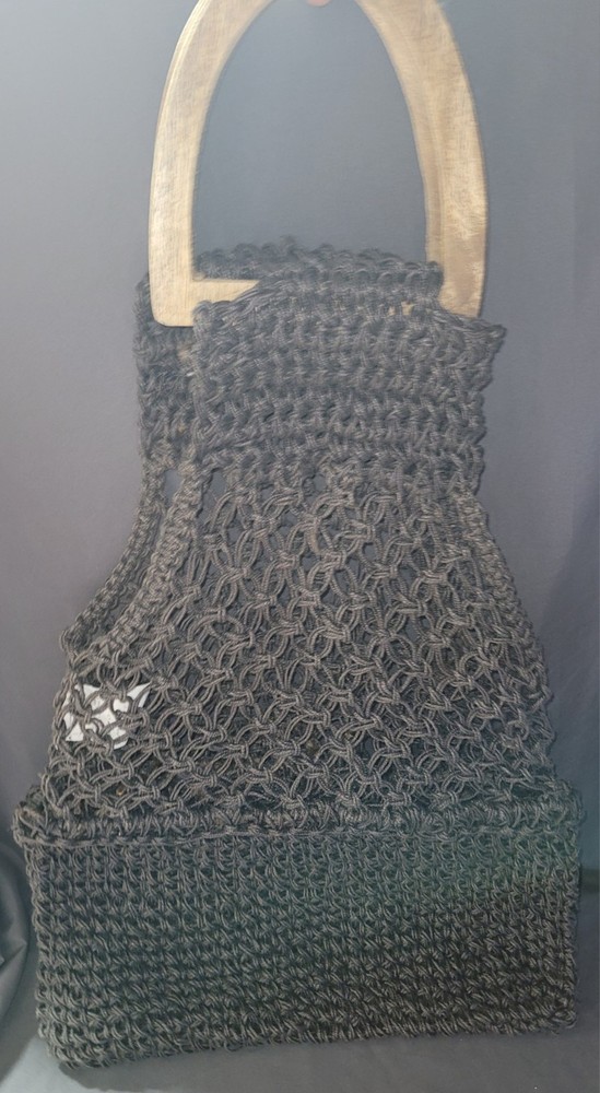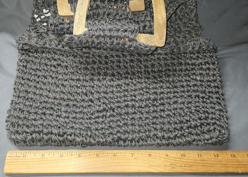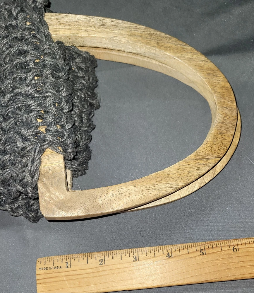 Creative Co-op Handbag Natural Macrame Jute Wooden Handles Boho Style Gray Grey Great Pre-owned condition please see all pictures for best description...