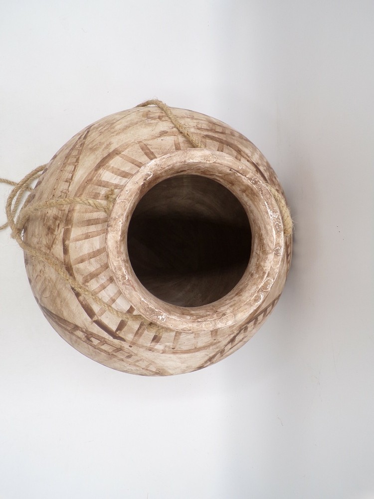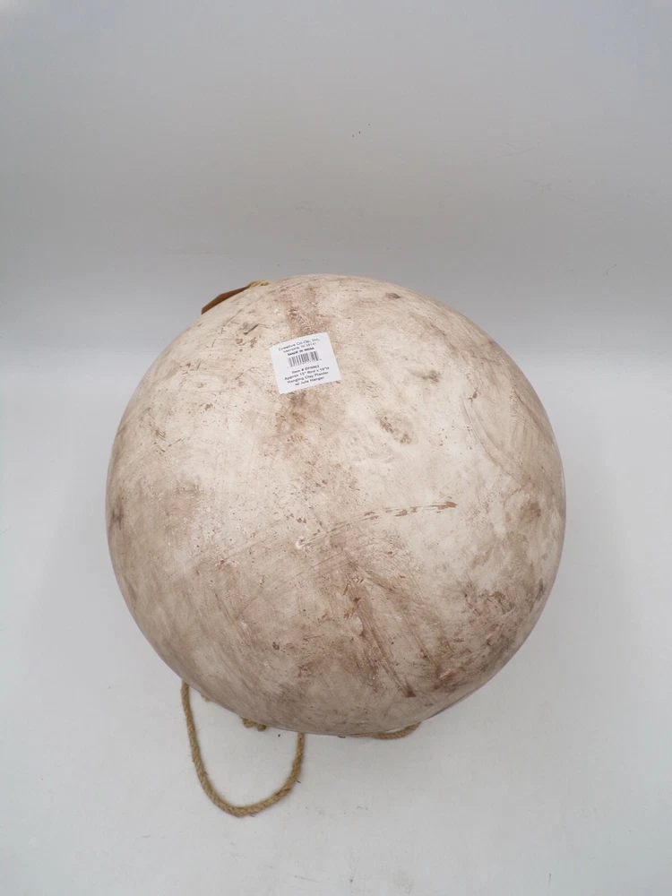 Creative Co-op Hanging Clay Planter w Jute Hanger Distressed Beige Large 10" x 15" #9964 Item is brand new! Auction includes: 1 Planter - 15" Round - 10" Tall