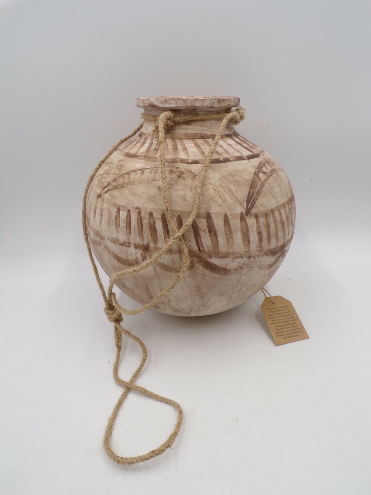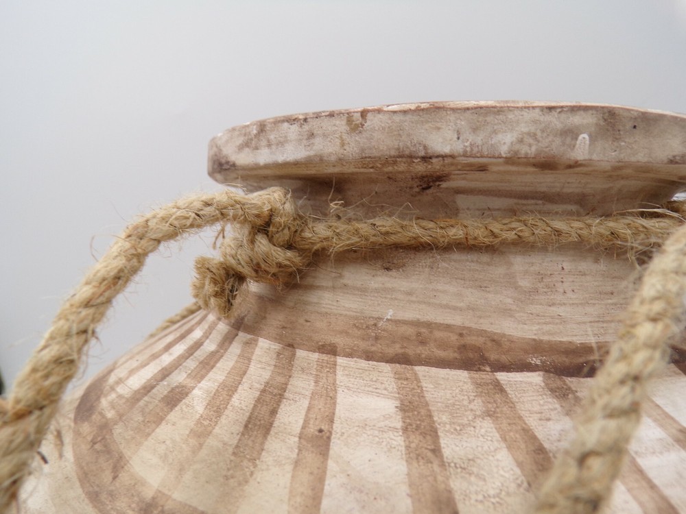 Creative Co-op Hanging Clay Planter w Jute Hanger Distressed Beige Large 10" x 15" #9964 Item is brand new! Auction includes: 1 Planter - 15" Round - 10" Tall...