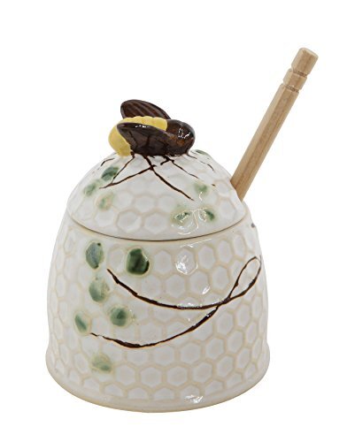 Creative Co-Op Honey Jar with Wood Honey Dipper Adorable ceramic honey jar with a bee on top of the lid. It comes with a wooden ball honey dipper. Measures 4.5" high x 3" wide Brand New!